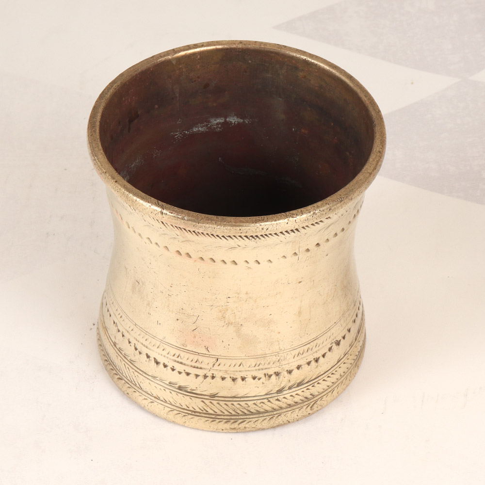 Discover the timeless beauty and sacred significance of the authentic brass Panchpatra pot, a true masterpiece of South Indian art. This stunning vessel, meticulously crafted by skilled artisans, is designed to elevate your ritual experiences and infuse your sacred spaces with a sense of reverence and tradition. Elevate your spiritual practices with the Panchpatra pot, a captivating centerpiece that will transform your rituals into profound, immersive experiences. Its timeless design and sacred symbolism will inspire you to connect more deeply with the divine, while its exceptional craftsmanship will bring a touch of elegance and sophistication to your sacred space. Whether you're a devout practitioner or simply seeking to infuse your home with a sense of cultural richness, this Panchpatra pot is the perfect addition to your ritual collection. Embrace the ancient traditions of South India and let this exquisite vessel guide you on a journey of spiritual enlightenment.