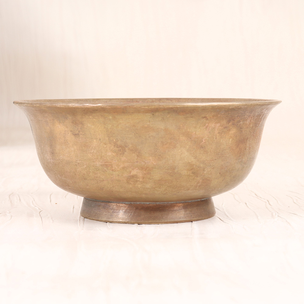 This vintage brass kumkum bowl is a stunning piece that will elevate your spiritual practice and infuse your home with timeless beauty. Crafted with care in the centuries-old tradition of South Indian artistry, its plain brown finish lends a warm, grounded energy perfect for your daily rituals. Whether you use it to hold kumkum, vermilion, or other sacred prayer items, this generous-sized bowl will become an indispensable part of your spiritual routine. The durable brass construction ensures it will withstand the test of time, making it a treasured heirloom to be passed down through generations. Designed to complement any prayer space or home decor, this kumkum bowl is a versatile accent piece that brings a touch of cultural richness to your surroundings. Its rustic yet elegant aesthetic blends seamlessly with traditional or modern styles, allowing you to infuse your sacred space with authentic South Indian flair.