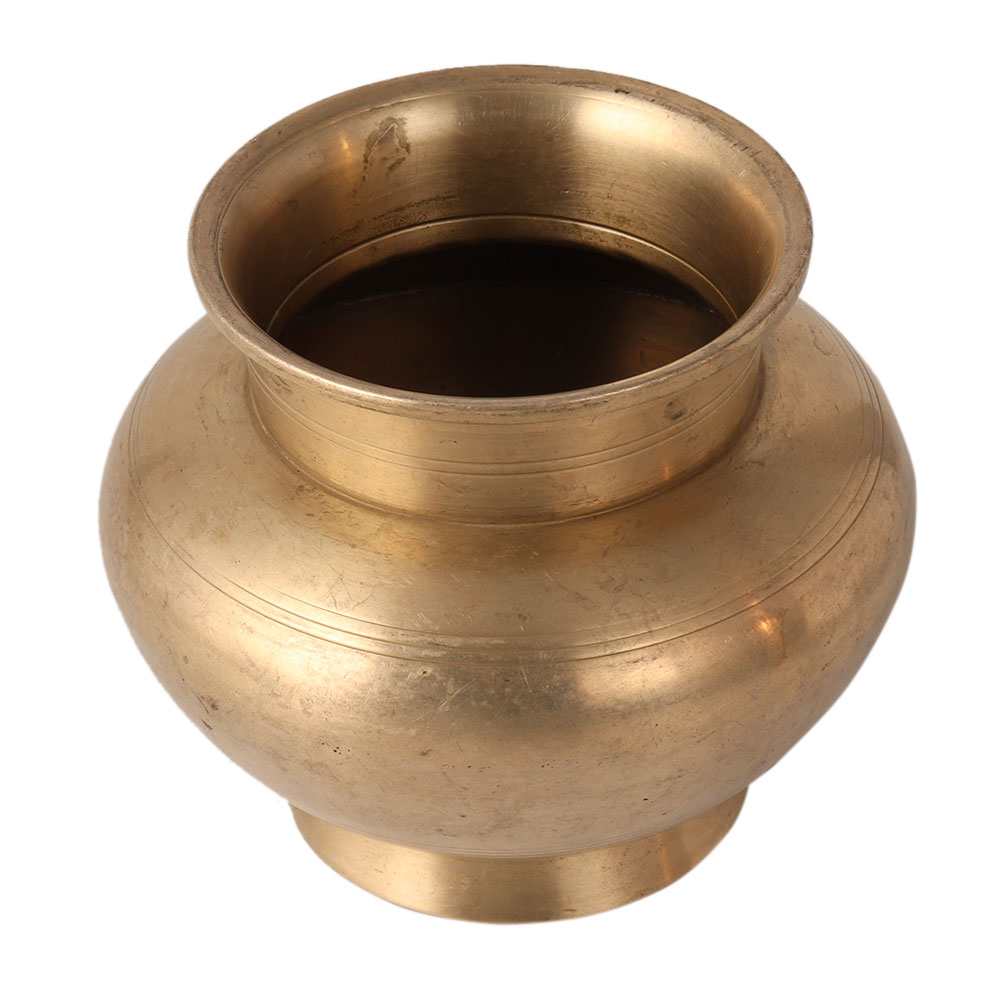 The plain round holy water pot is made of bronze. It has a glossy look. Give this pot as a gift to your theistic friend or relative. You can also decorate your home with it.