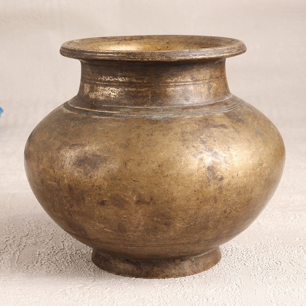 This vintage brass holy water pot with an antique brown finish is meticulously crafted by skilled Indian artisans hailing from the vibrant region of Rajasthan, India. Fashioned from high-quality brass, this piece reflects the craftsmanship and artistry that has been passed down through generations. This elegant holy water pot is not just a religious artefact, it's a versatile addition to your living or working space. Whether it graces your home, office, hotel, cafe, shop, or restaurant prayer room, it serves both a spiritual and decorative purpose. Use it during your prayers or meditation, filling it with holy water for blessings and serenity. When not in use, it transforms into a charming small flower pot, adding a touch of vintage beauty to any setting. If you're an antique enthusiast, this pot is a must-have, enriching your collection and making an eye-catching display at exhibitions. Furthermore, it's a thoughtful gift for your loved ones during special, festive, or auspicious occasions, symbolizing both tradition and elegance.