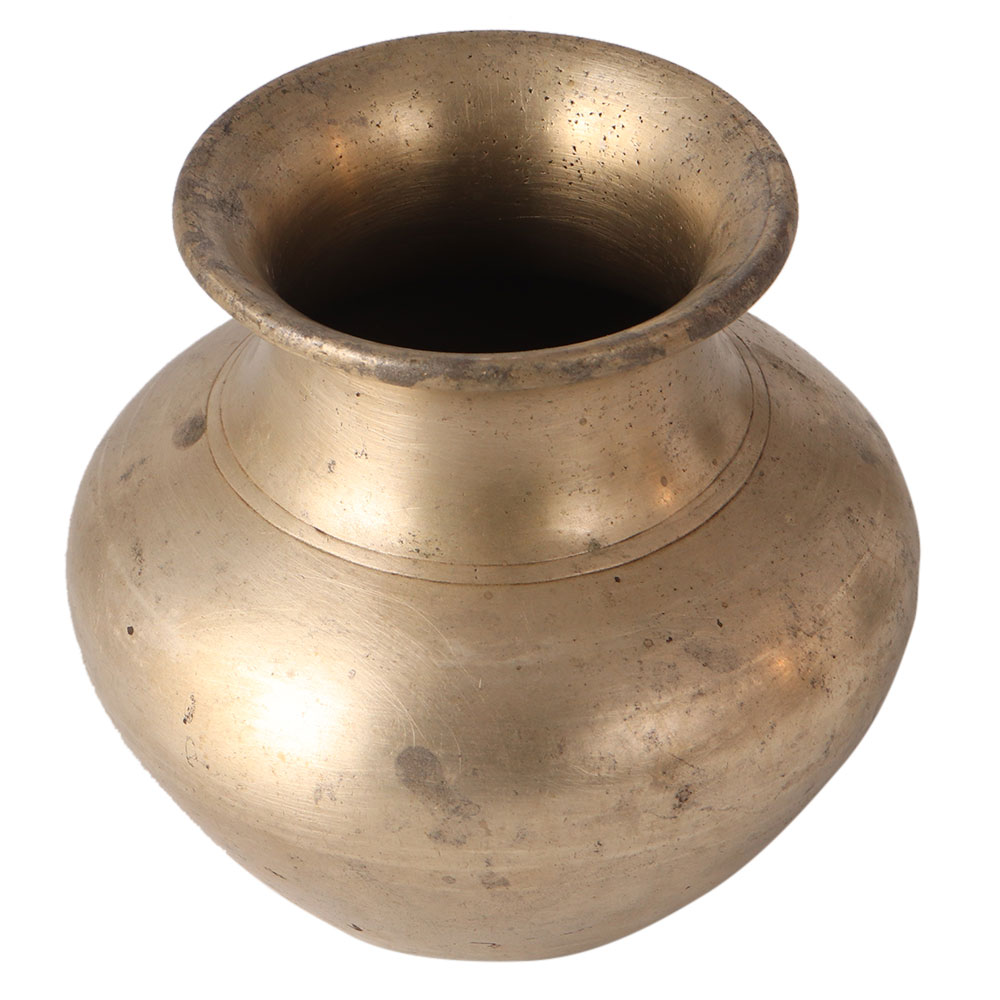 Plain holy water pot made of a white metal alloy. It has a shiny appearance. It has a flat bottom to hold on the surface. It has a simple design but still looks muscular. Gift this pot to your friend or relative who is a collector.