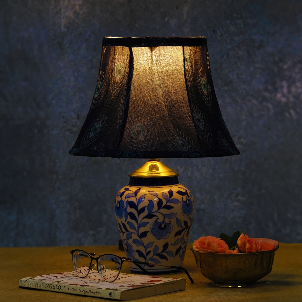 Ikat weave is a blend of many traditions, Ikat word originating from the Indonesian languages and means "to bind". The technique involves binding individual yarns or bundles of yarns with a tight wrapping, then dyeing the yarns, and altering the binding to create different patterns. Plume Ikat is beautifully weaved pattern of a peacock's feather and shows beautifully as a lampshade.