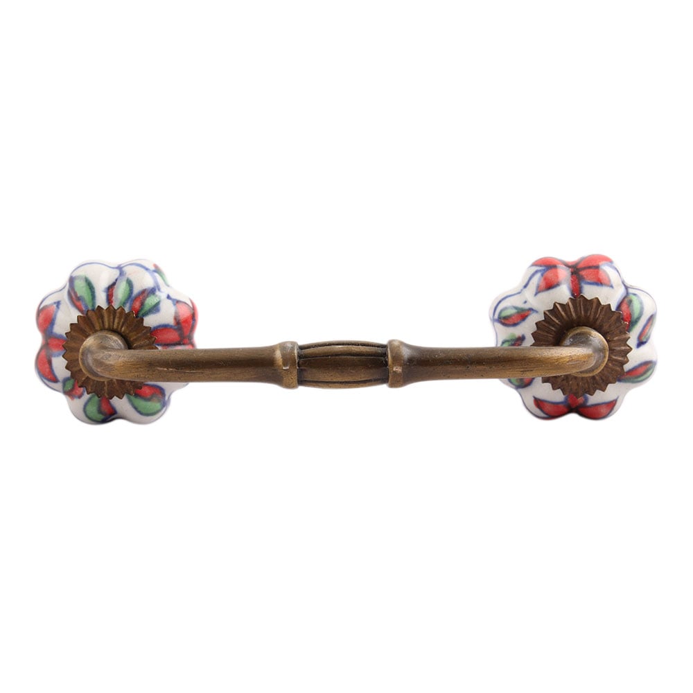 Plumeria Medium Ceramic Bridge Handle. Ideal for Drawer, Dresser, Cabinet, Wardrobe, Cupboard and Almirah.