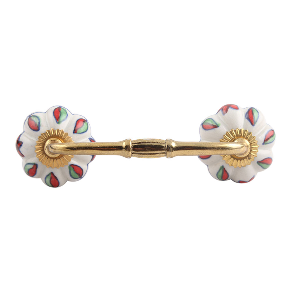 Plumeria Mystical Flower Ceramic Bridge Handle. Ideal for Drawer, Dresser, Cabinet, Wardrobe, Cupboard and Almirah.