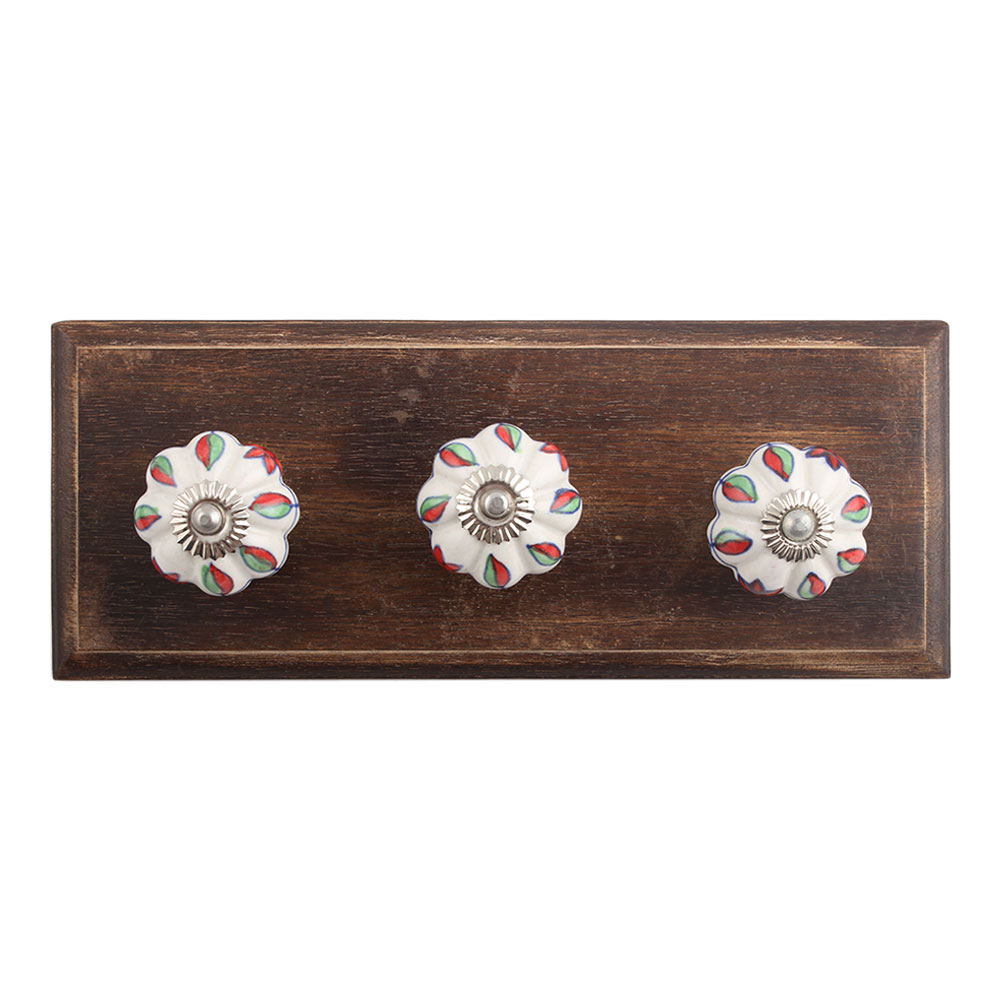 Plumeria Mystical Flower Ceramic Wooden Hook. A Perfect Complement to the Soft Tone of the Wood are these White Traditional Hat Coat Hook Made of Genuine Porcelain and Brass. It can be use to Hang Jewellery, Leashes, Towels, Scarves, Light Weight Sweaters, Caps Etc.