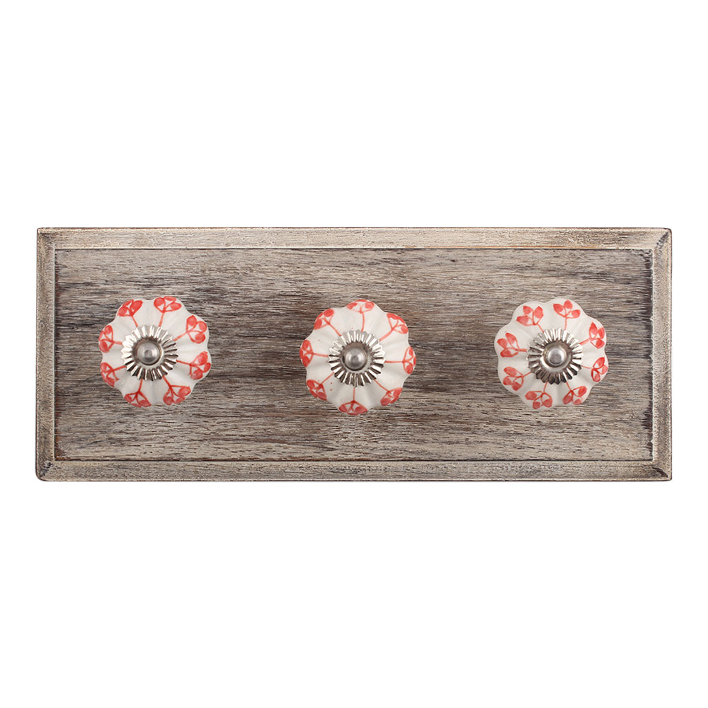 Poopy Flower Ceramic Wooden Hook. A Perfect Complement to the Soft Tone of the Wood are these White Traditional Hat & Coat Hook Made of Genuine Porcelain and Brass. It can be use to Hang Jewellery, Leashes, Towels, Scarves, Light Weight Sweaters, Caps Etc.