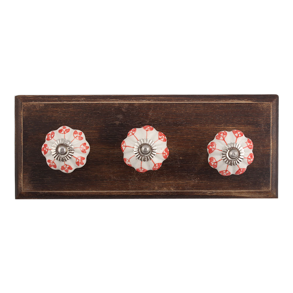Poopy Flower Ceramic Wooden Hook. A Perfect Complement to the Soft Tone of the Wood are these White Traditional Hat & Coat Hook Made of Genuine Porcelain and Brass. It can be use to Hang Jewellery, Leashes, Towels, Scarves, Light Weight Sweaters, Caps Etc.