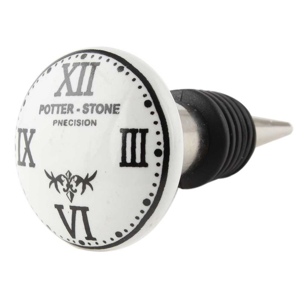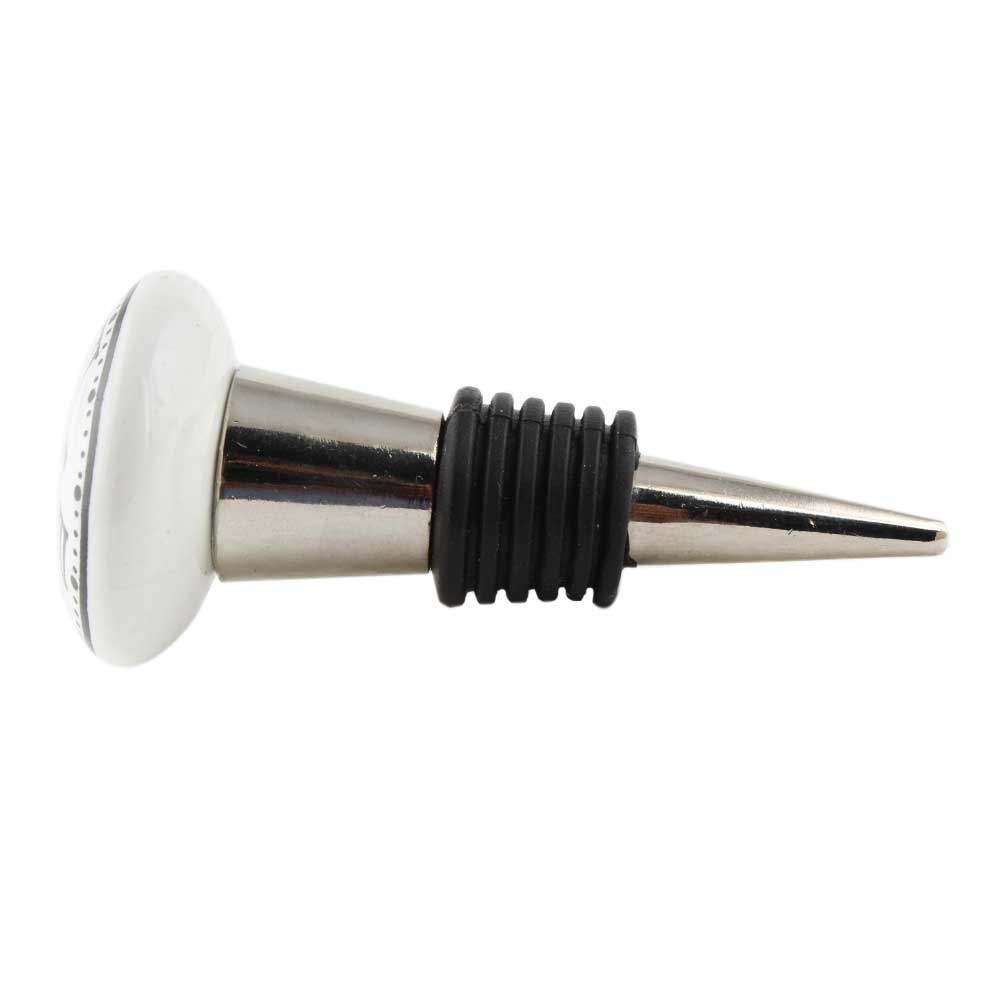 Potter Stone White Flat Ceramic Wine Bottle Stopper. Zinc Alloy Wine Bottle Stopper with Attractive Jute Bag Packaging.