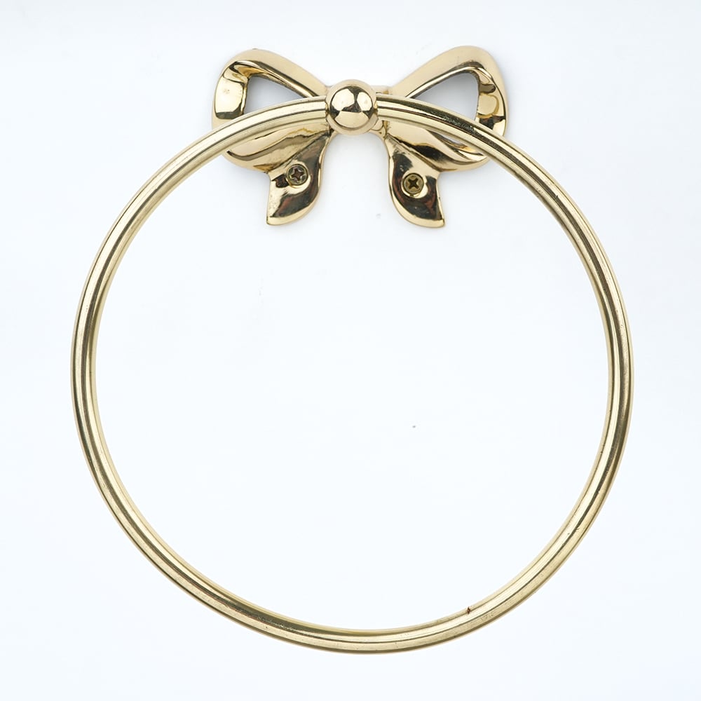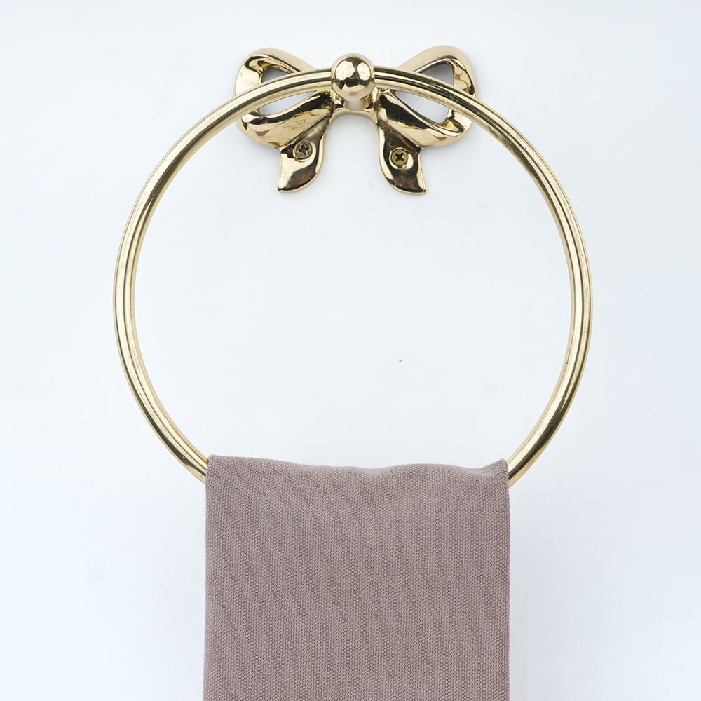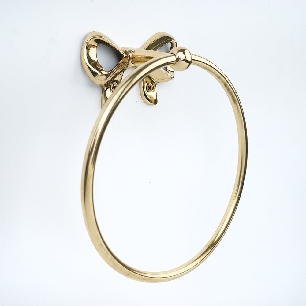 Enhance your bathroom dcor with this beautifully designed brass towel ring featuring a charming bow accent. Crafted from high-quality solid brass, it offers durability along with a sleek, polished finish that resists rust and tarnish. The sturdy circular ring provides a convenient and stylish way to hang hand towels, keeping them easily accessible while adding a decorative touch. Perfect for both modern and classic interiors, this wall-mounted towel ring combines functionality with timeless elegance.