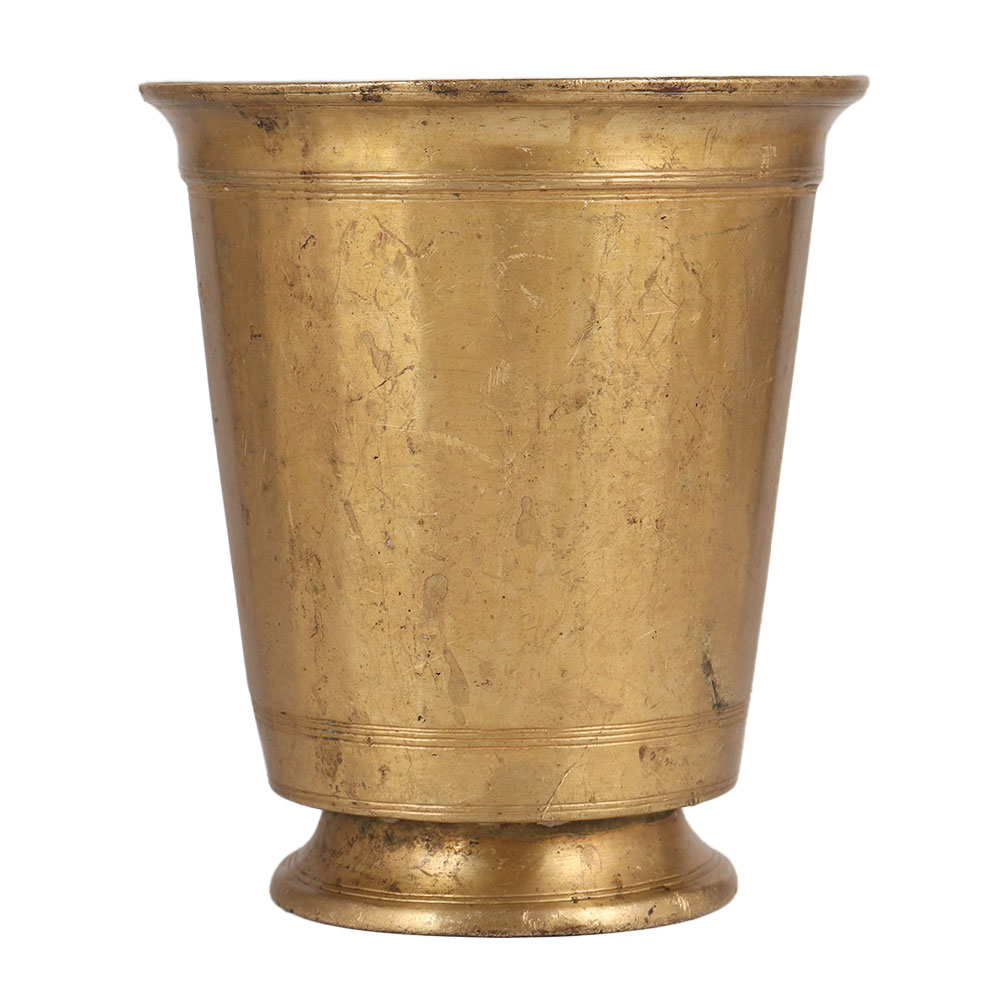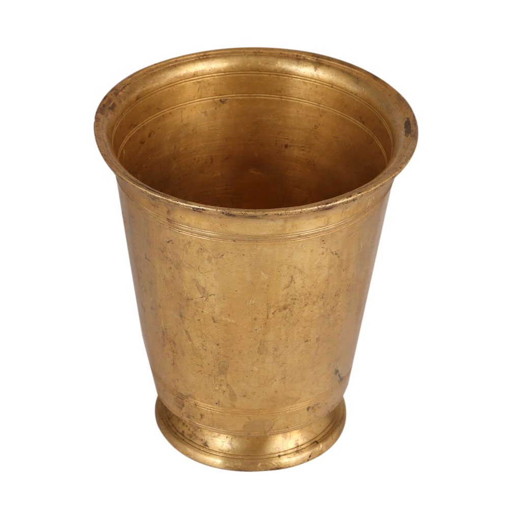 Buy a premium brass glass online that is handcrafted by highly skilled Indian artisans specializing in South Indian Art. With its antique brown finish, it exudes a sense of elegance and tradition. This versatile Brass Glass serves multiple purposes. During Pooja ceremonies, it is used to hold milk or holy water and offer it to deities. Placing it in the north or east of a room, filled with water, is believed to radiate positive energy throughout the house. Additionally, it can be utilized as a small indoor flower pot, making it a versatile home, office, restaurant, or hotel decoration. For vintage art enthusiasts, this Brass Glass is a valuable addition to any collection. Its intricate craftsmanship and timeless appeal make it a truly remarkable piece. Moreover, it makes for an incredible gift for special, festive, or auspicious occasions, allowing you to share the joy and blessings with your loved ones. Embrace tradition and beauty with this exceptional Brass Glass with Stand.