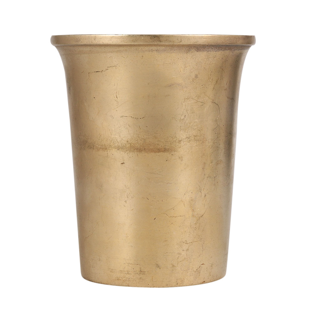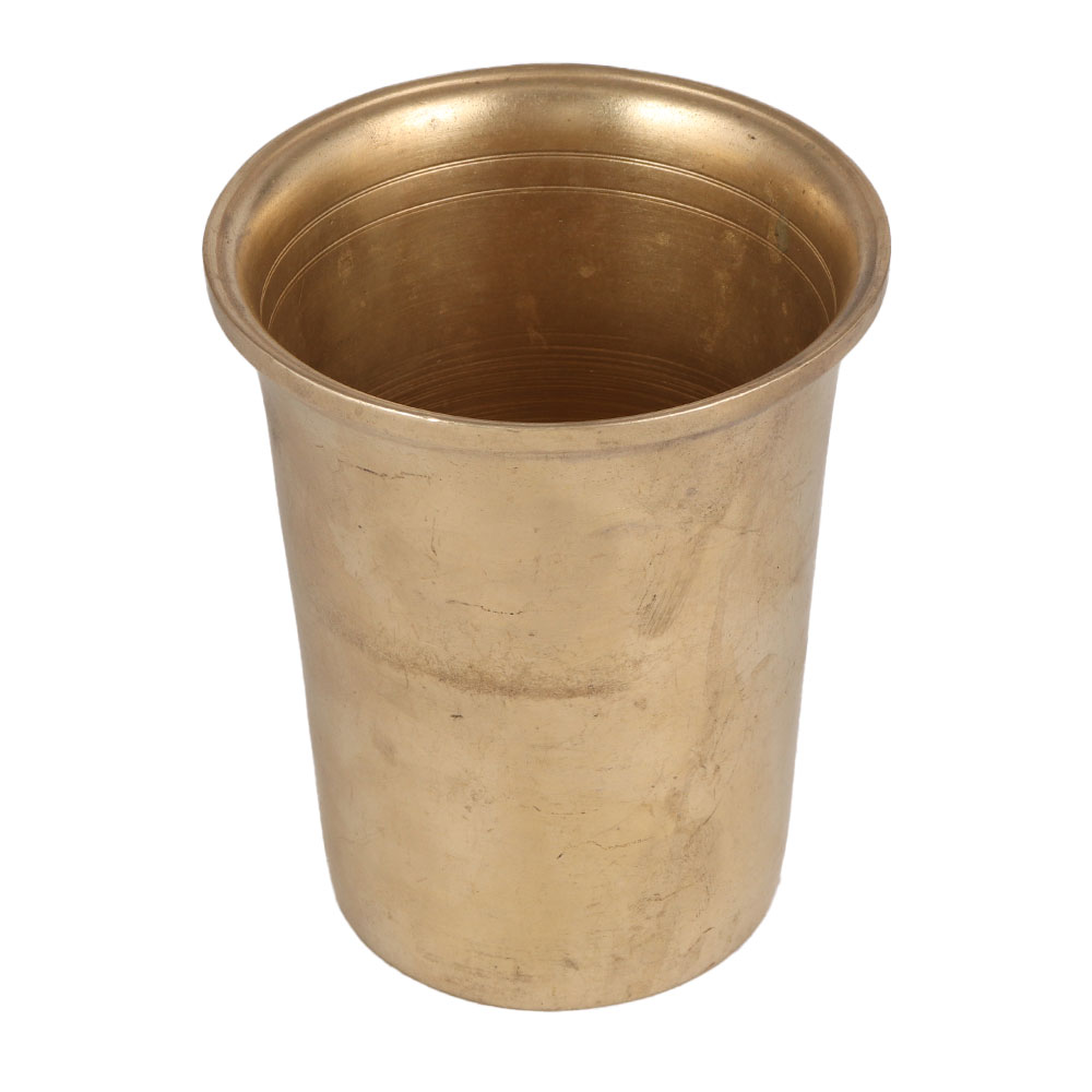 This brass glass is an essential item in Indian households during Pooja, holds significant cultural and religious value. Handcrafted by skilled Indian craftsmen in South Indian Art using premium brass, this exquisite piece is designed to perfection. Its elegant golden finish enhances its aesthetic appeal and adds a touch of elegance to any sacred space. Traditionally, the Brass Glass is used to hold milk or holy water during religious rituals and auspicious functions. It serves as a vessel for offering water to deities, symbolizing devotion and reverence. Not limited to religious practices, this versatile piece can also be utilized as an indoor flower pot, adding a hint of traditional charm to home, office, restaurant, or hotel decoration. Its timeless design makes it a coveted item for vintage art collectors and enthusiasts. Whether as a thoughtful gift for loved ones during special occasions or as a cherished addition to one's own collection, the brass glass embodies the rich cultural heritage and serves as a symbol of spirituality and beauty.