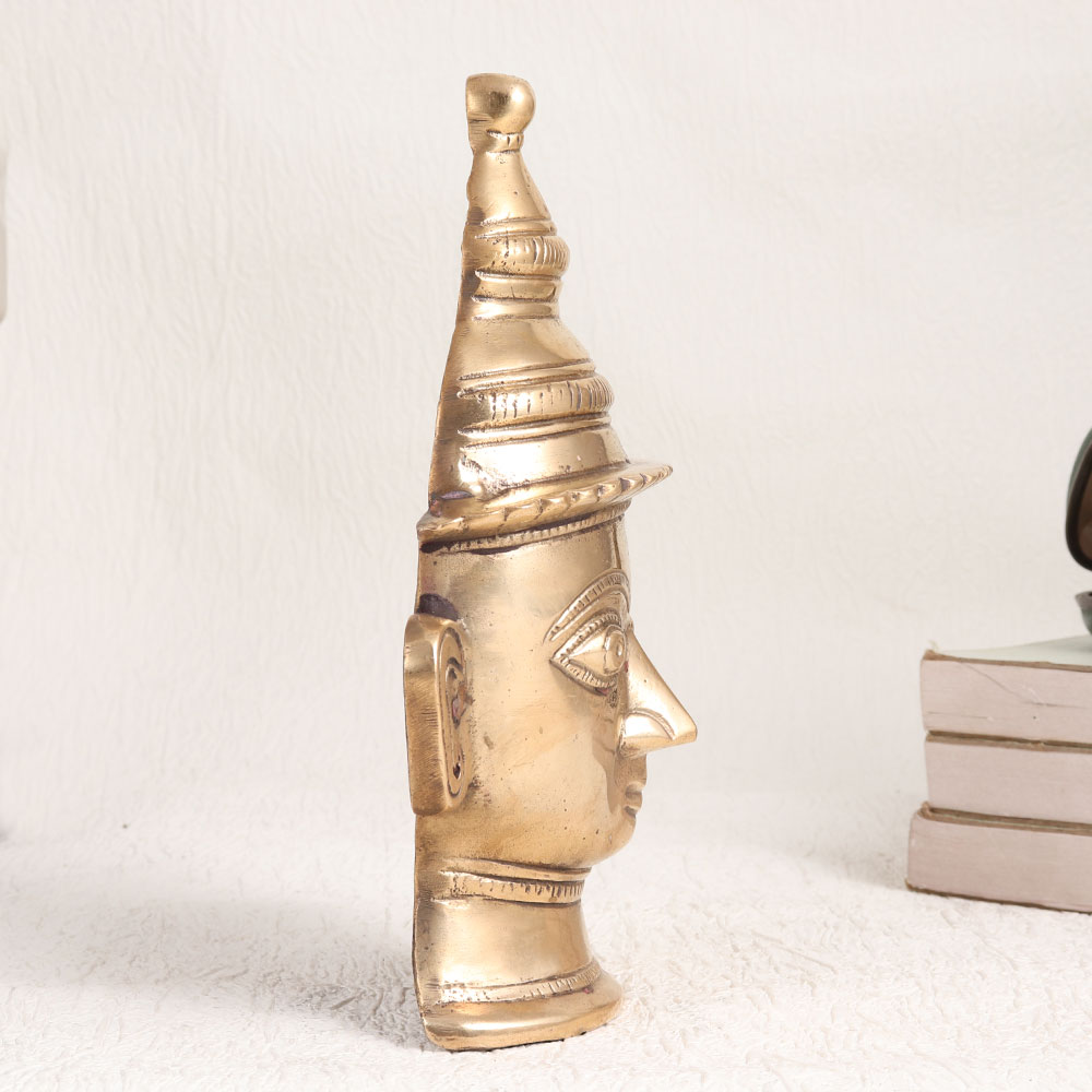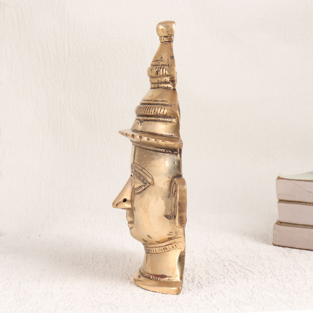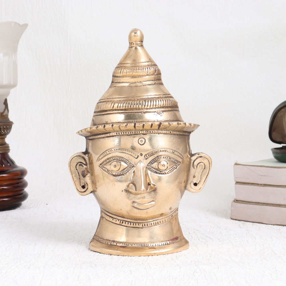 Enhance your decor and spirituality with our exquisite Vintage Brass Goddess Parvati Head Plate that is meticulously handcrafted by highly talented Indian artisans. This stunning piece showcases the divine beauty of Goddess Parvati, intricately designed in antique brown finish brass. Crafted with precision and devotion, this head plate is a testament to the artistry and craftsmanship that India is renowned for. Made from high-quality brass, it exudes an aura of timeless elegance, making it a versatile addition to any setting. Whether you wish to adorn your home, office, restaurant, hotel, cafe, or shop, this piece seamlessly blends into any environment, enhancing its aesthetic appeal and fostering an atmosphere of tranquillity for prayer and meditation. Perfect for collectors, this head plate adds a touch of vintage charm to your collection or makes for an enchanting exhibit at cultural showcases and exhibitions. Share the blessings of Goddess Parvati with your loved ones by gifting them this piece on special, festive, or auspicious occasions.