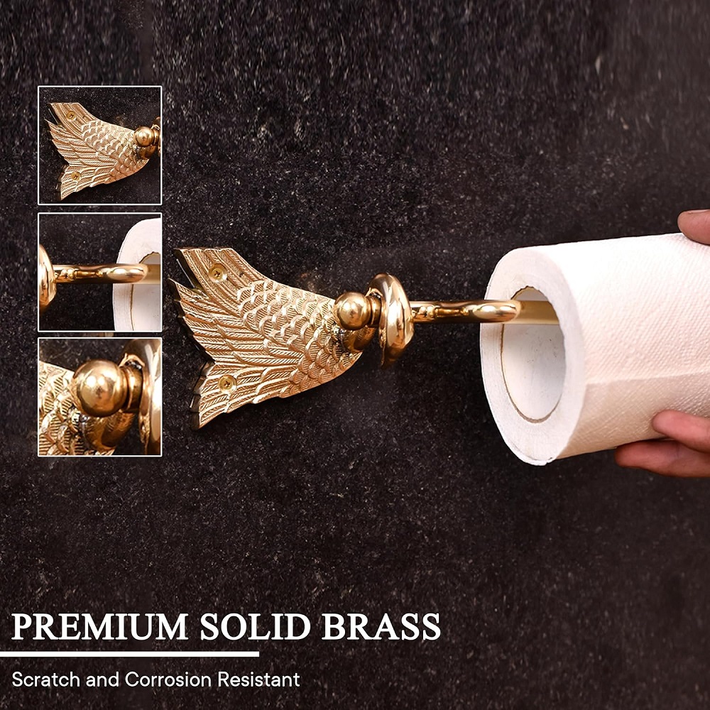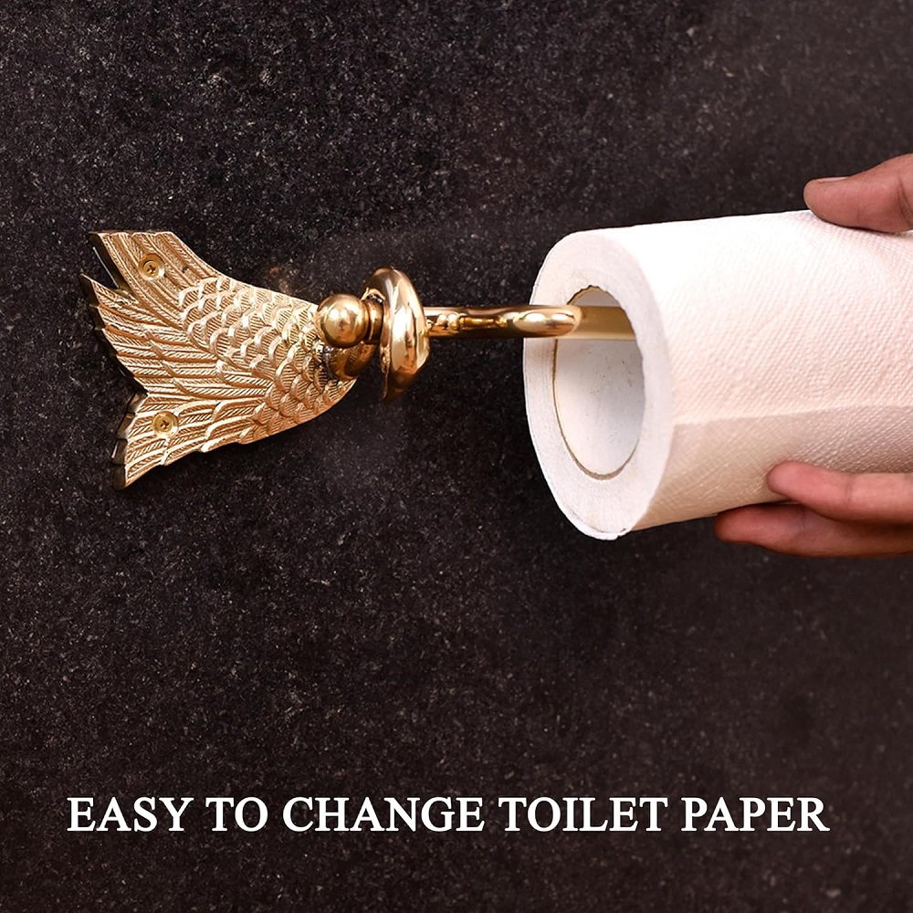Enhance the elegance of your bathroom with our exquisite Brass Toilet Paper Holder featuring a graceful swan design and a lavish golden finish. Meticulously handcrafted by highly skilled Indian artisans, this holder is a testament to the rich tradition of craftsmanship that transcends generations. Made from high-quality brass, this piece not only exudes timeless charm but also ensures durability and longevity. The swan motif adds a touch of sophistication to your modern bathroom, seamlessly blending traditional artistry with contemporary aesthetics. Its golden finish adds a luxurious sheen, making it a standout accessory that complements any interior. Versatile and functional, this toilet paper holder is suitable for various spaces, be it your home, hotel, or office. Its unique design effortlessly merges form and function, providing a practical solution with a touch of artistic flair. Consider this holder as a thoughtful gift for your loved ones on special or festive occasions. It not only adds a touch of opulence to their spaces but also carries the cultural legacy of skilled craftsmanship, making it a truly meaningful and cherished present.