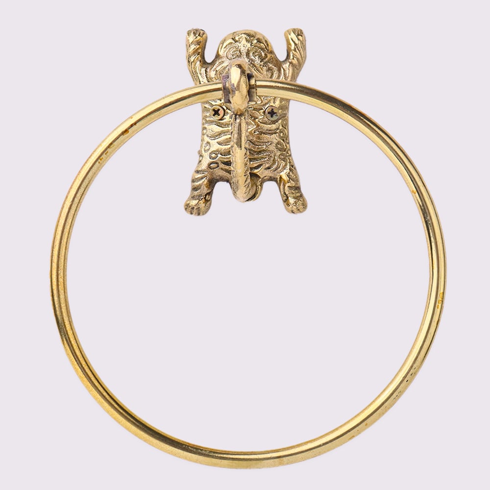 Elevate your bathroom style with the captivating Premium Brass Tiger Design Ring Hanger. This exquisite piece is more than just a functional accessory - it's a stunning work of art that will transform your space. The Premium Brass Tiger Design Ring Hanger is a true standout piece that will instantly upgrade the look and feel of your bathroom. The striking tiger motif lends an air of sophisticated, worldly charm, while the solid brass construction ensures it will withstand the humidity and moisture of the bathroom environment. This versatile hanger is perfect for hanging towels, robes, loofas, and more, keeping your essentials organized and within reach. Plus, the simple yet elegant design complements a variety of bathroom decor styles, from modern minimalist to traditional. Elevate your self-care routine and impress your guests with the Premium Brass Tiger Design Ring Hanger. This captivating piece will infuse your bathroom with a sense of luxury and charm that you'll love coming home to every day.