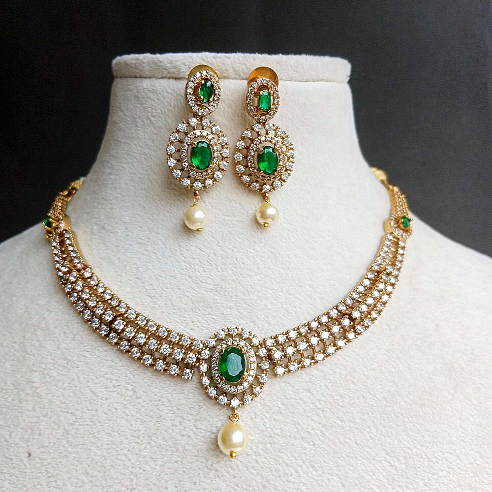 The Premium Bridal Stone Necklace Set with Pearls is designed to embody the richness and emotion of bridal adornment. Crafted from brass and finished in a deep green tone, this long necklace is enhanced with sparkling stone work and soft pearl detailing. The combination creates a look that feels regal, ceremonial, and timeless. Made for moments that matter, it complements bridal attire with grace, tradition, and luminous beauty.