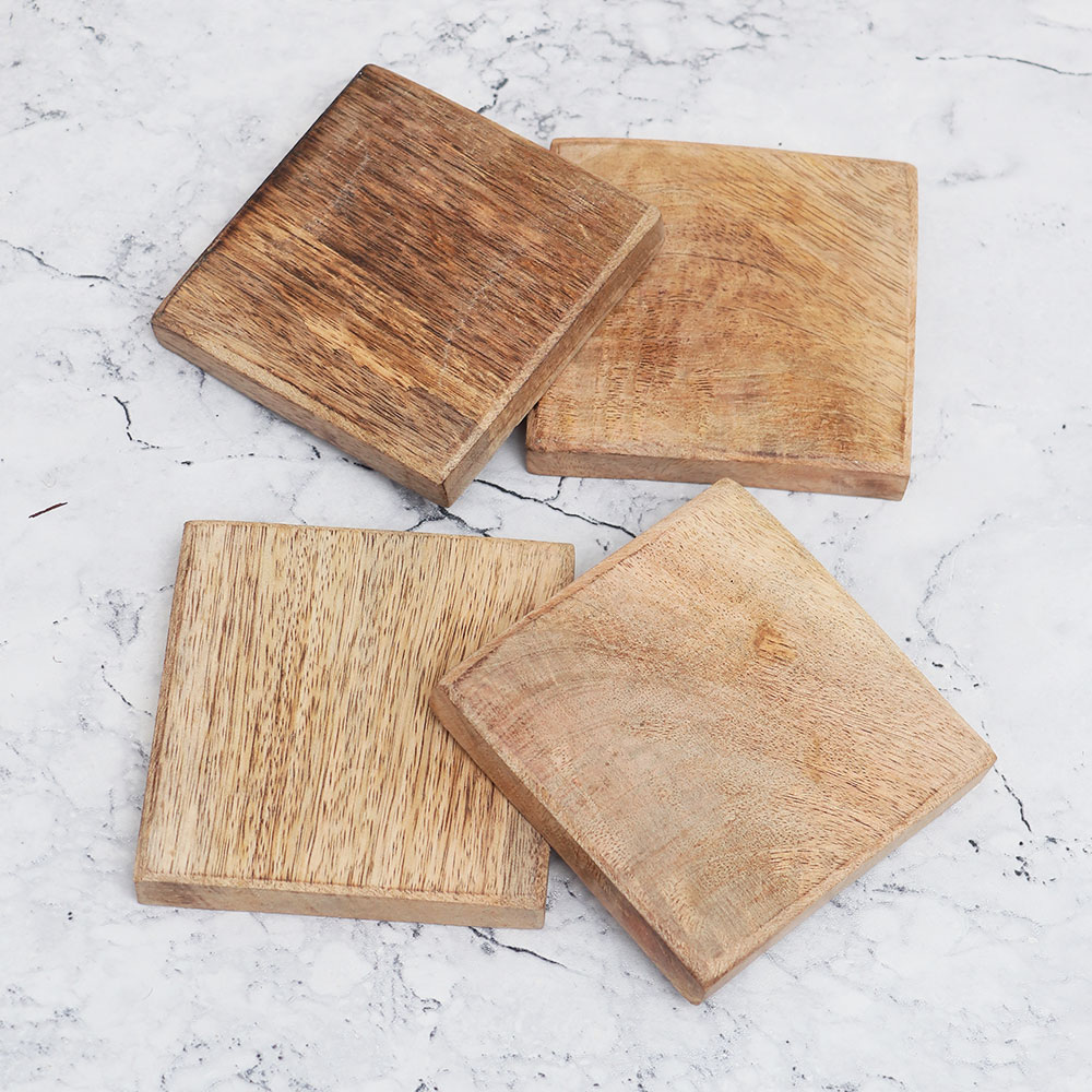 This Wooden Coaster Set is crafted from the finest quality wood and designed to add a touch of elegance to your living space. Handmade with precision by professional Indian artisans, these coasters showcase exceptional craftsmanship. With their square shape and antique brown finish, these coasters not only serve as functional accessories but also double as captivating decorative pieces for your home or office. The Wooden Coaster Set comes in a Pack of four, providing ample protection for your surfaces. Whether you\'re enjoying a cup of tea, a glass of water, a refreshing juice, or a steaming cup of coffee, these coasters are the perfect companions. Use them in your home, office, restaurant, hotel, or café to prevent unsightly stains on your furniture. Not only are these coasters practical, but they also make for a thoughtful gift. Surprise your loved fours on special or festive occasions with this timeless and versatile Wooden Coaster Set.