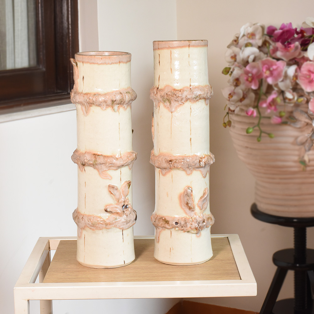 Premium Ceramic Bamboo Vases by Artist Meena Vohra Set Of 2