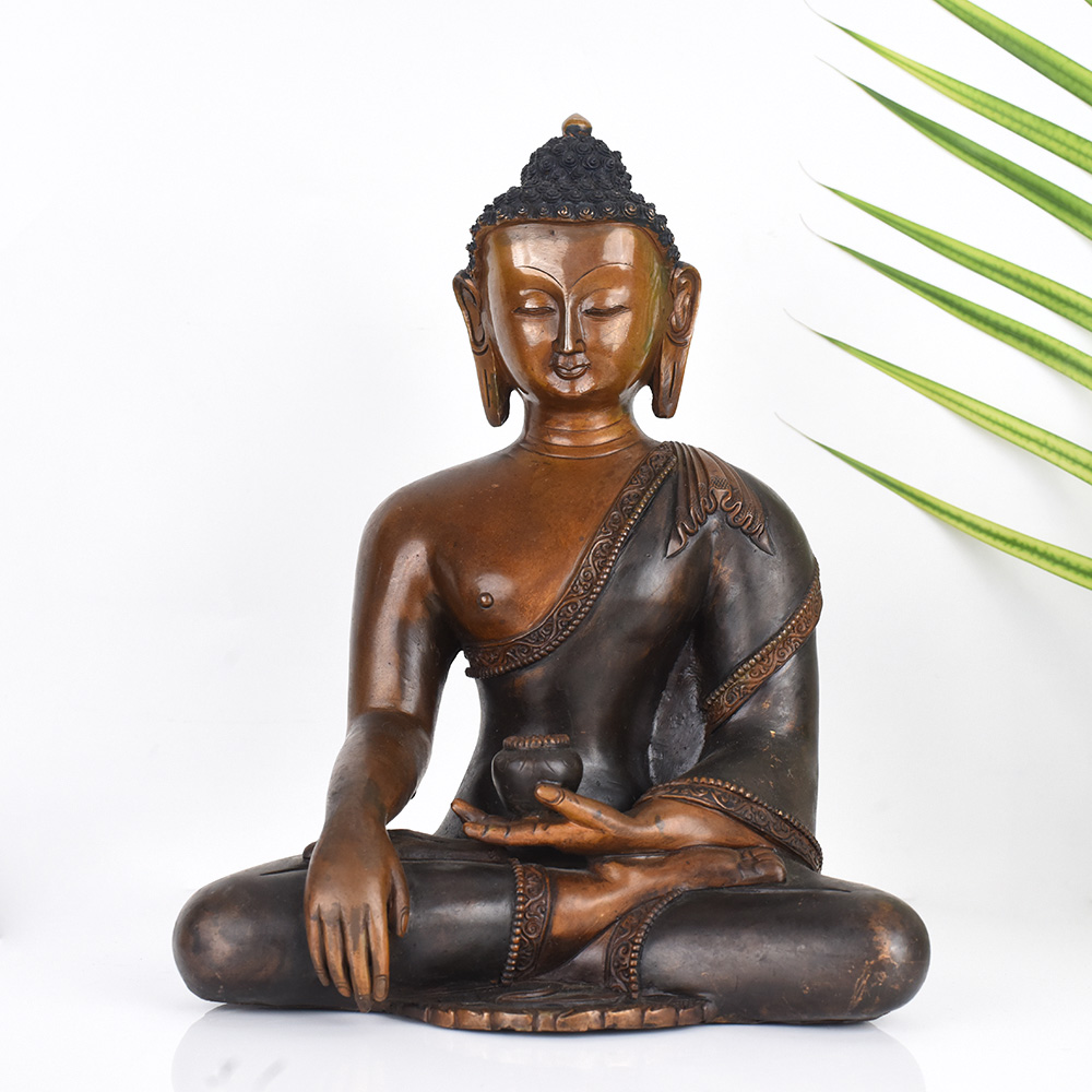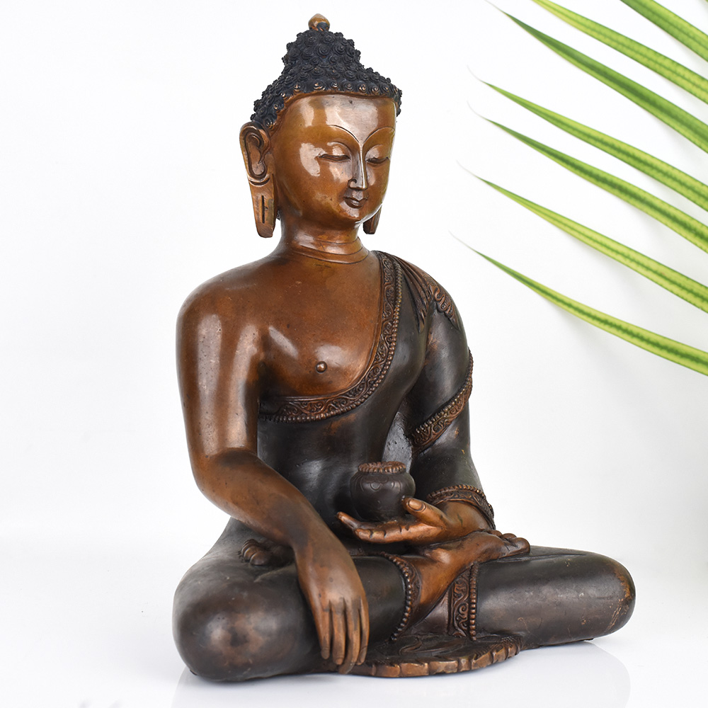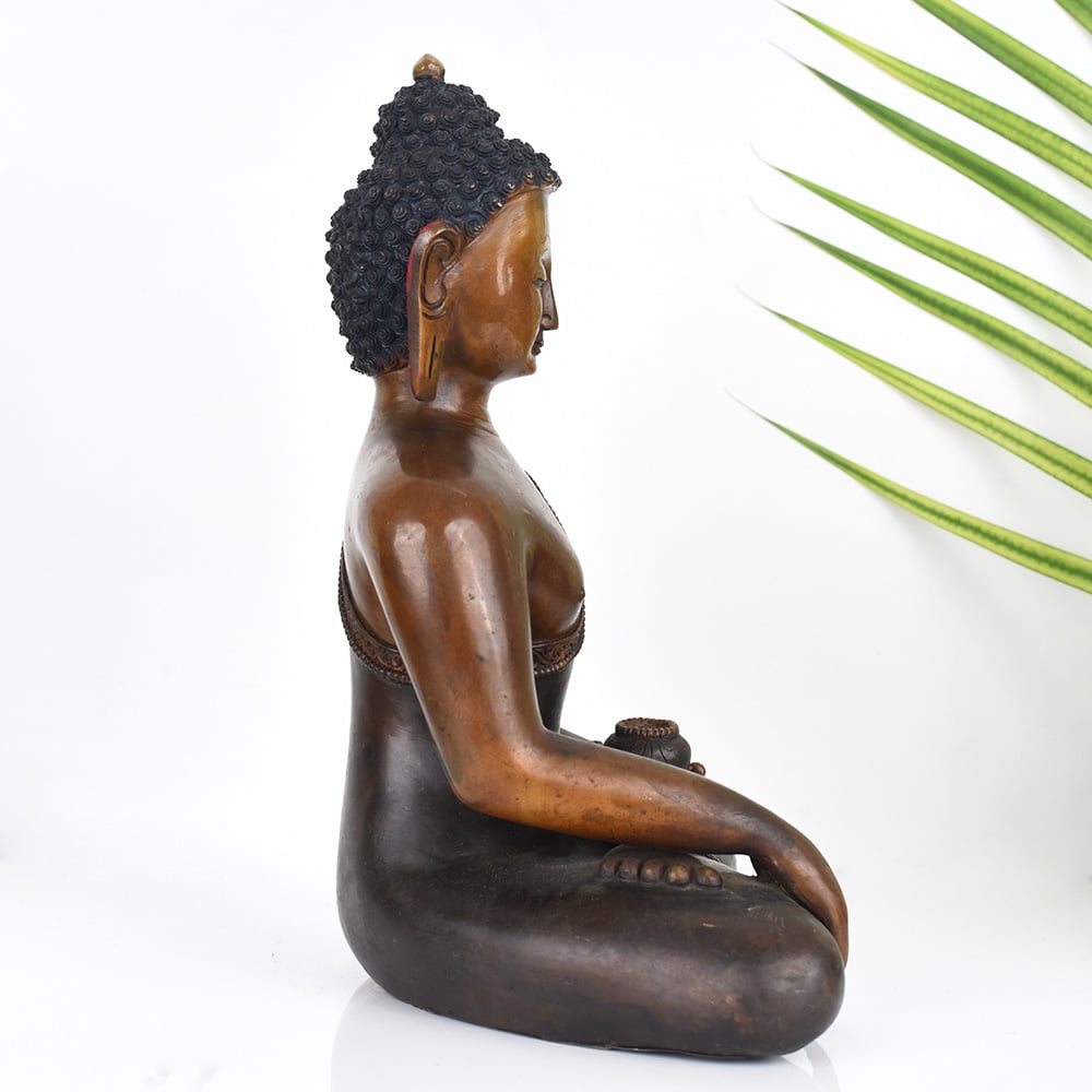 Gaze upon the serene visage of the Tibetan Buddhist Deity Lord Buddha, and feel the weight of the world lift from your shoulders. This exquisite vintage copper statue, crafted with the utmost reverence and skill, is a portal to a realm of profound peace and enlightenment. The Tibetan Buddhist Deity Lord Buddha copper statue is more than just a beautiful piece of art - it is a tool for spiritual growth and inner transformation. As you gaze upon its serene countenance, you'll find your mind calming, your breath deepening, and your heart opening to the universal truths that the Buddha embodied. This stunning statue is the perfect addition to your prayer room or meditation space, inviting you to connect with the timeless wisdom and serenity of the Tibetan Buddhist tradition. Whether you're a devout practitioner or simply seeking a moment of peace in your day, this exquisite work of art will become a cherished companion on your journey of self-discovery and enlightenment.