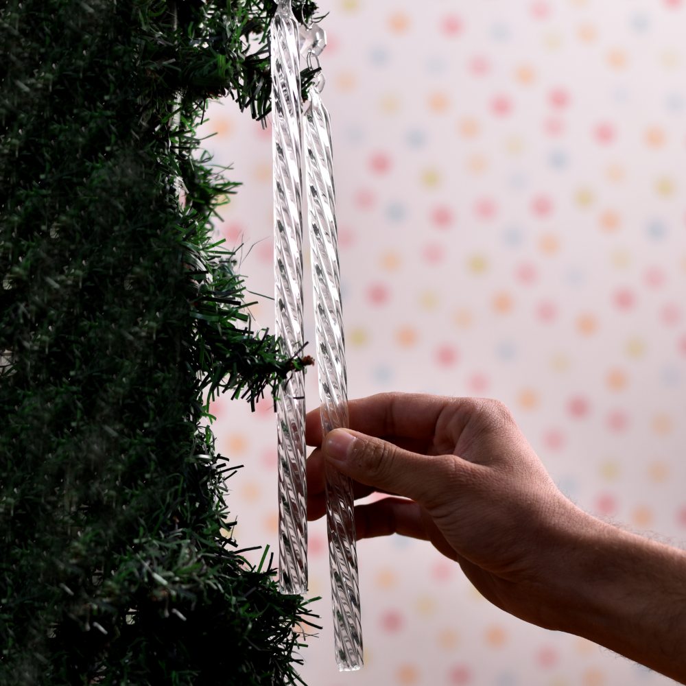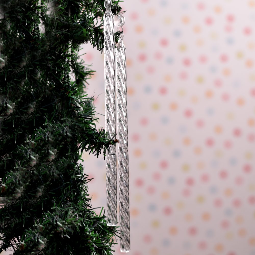 Celebrate the spirit of Christmas with our exquisite handmade Glass Christmas Ornament, a true masterpiece crafted by highly skilled and experienced Indian artisans. Each ornament is meticulously fashioned from premium quality glass, forming a delicate long stick made in an intricate and mesmerizing pattern. The clarity of the glass adds a touch of elegance, reflecting the twinkling lights of the season. This set of 6 glass ornaments is designed to grace your Christmas tree with enchanting beauty. Hang them with care to create a stunning display that will captivate hearts and fill your home with festive cheer. Their unique design makes them equally perfect as gifts for your loved ones on special occasions, adding a touch of tradition and craftsmanship to their celebrations.