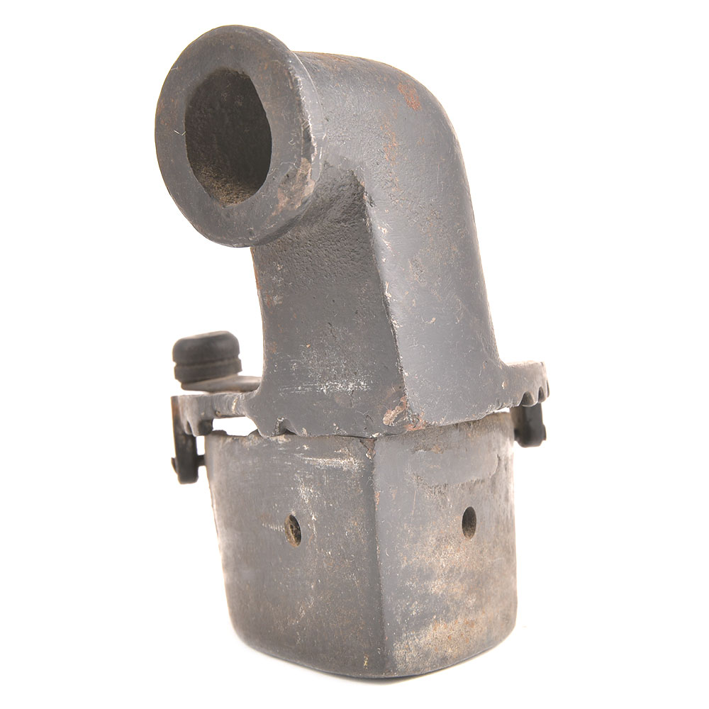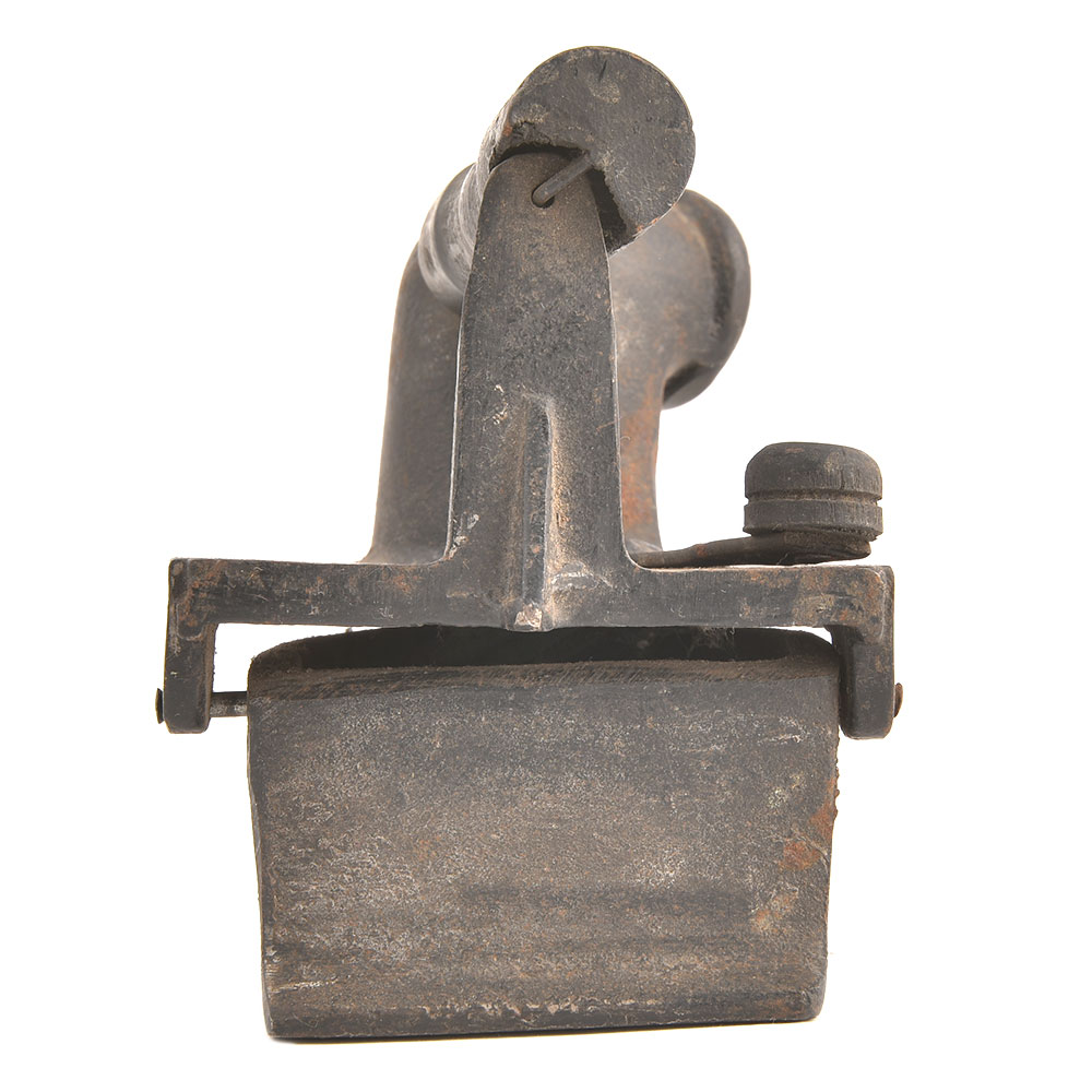 An Old Age Handmade Iron Which has a Bottom That is Very Smooth with Wood That is in Good Shape. The Chimney Might Be a Cast Brass. has Gold Tone. The Rim on the Chimney has a Chip That Looks Like It Was in Casting.