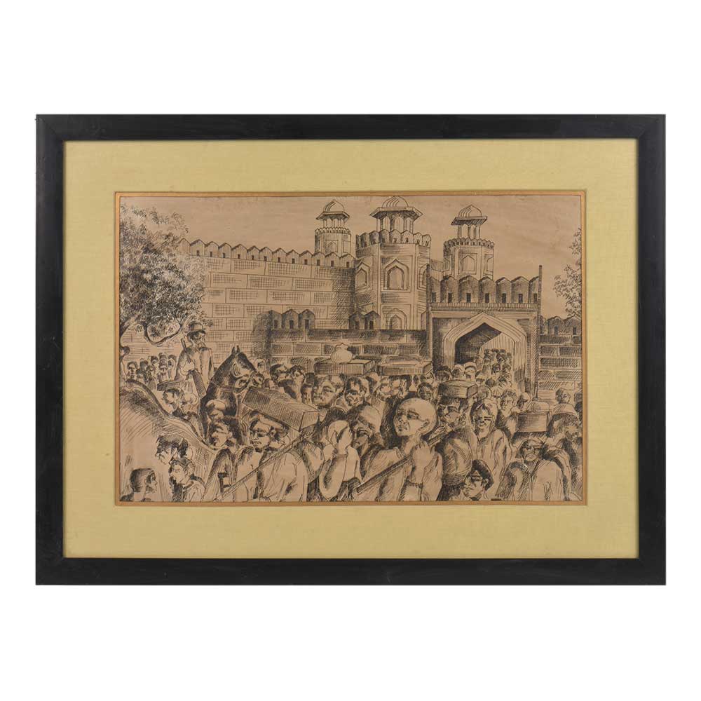 • Procession of Indians at Red Fort Delhi  lithograph In Frame