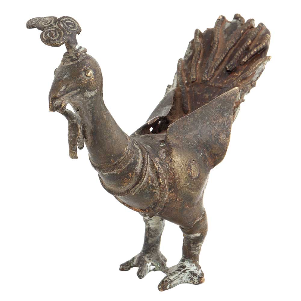 • Pure Brass Peacock Figurine In Antique Finish