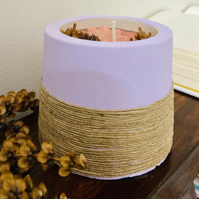 Cemented candle holder with candle. A perfect gift for housewarming party, Festive season and for home decor.