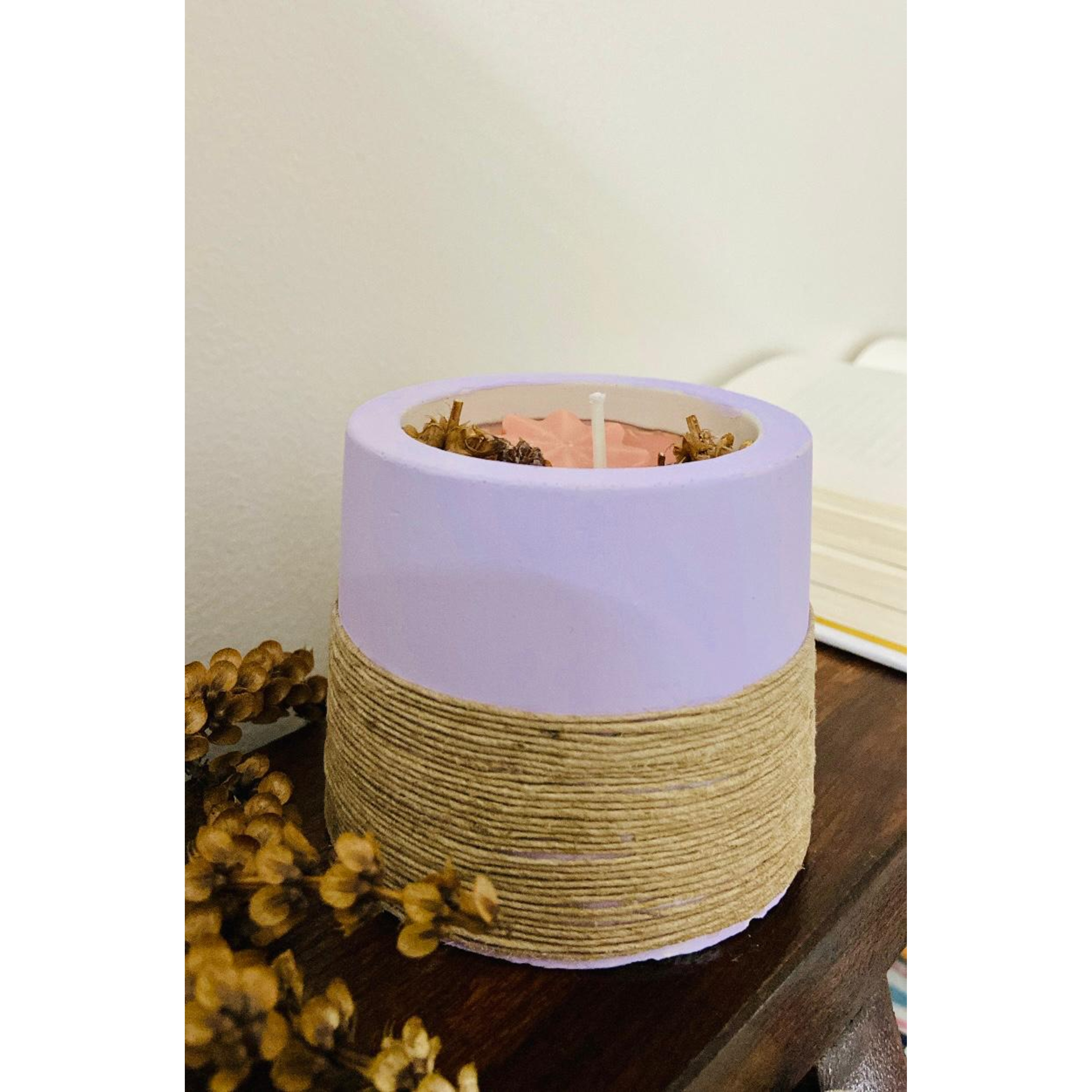 • Purple Cemented Candle Holder with Candle