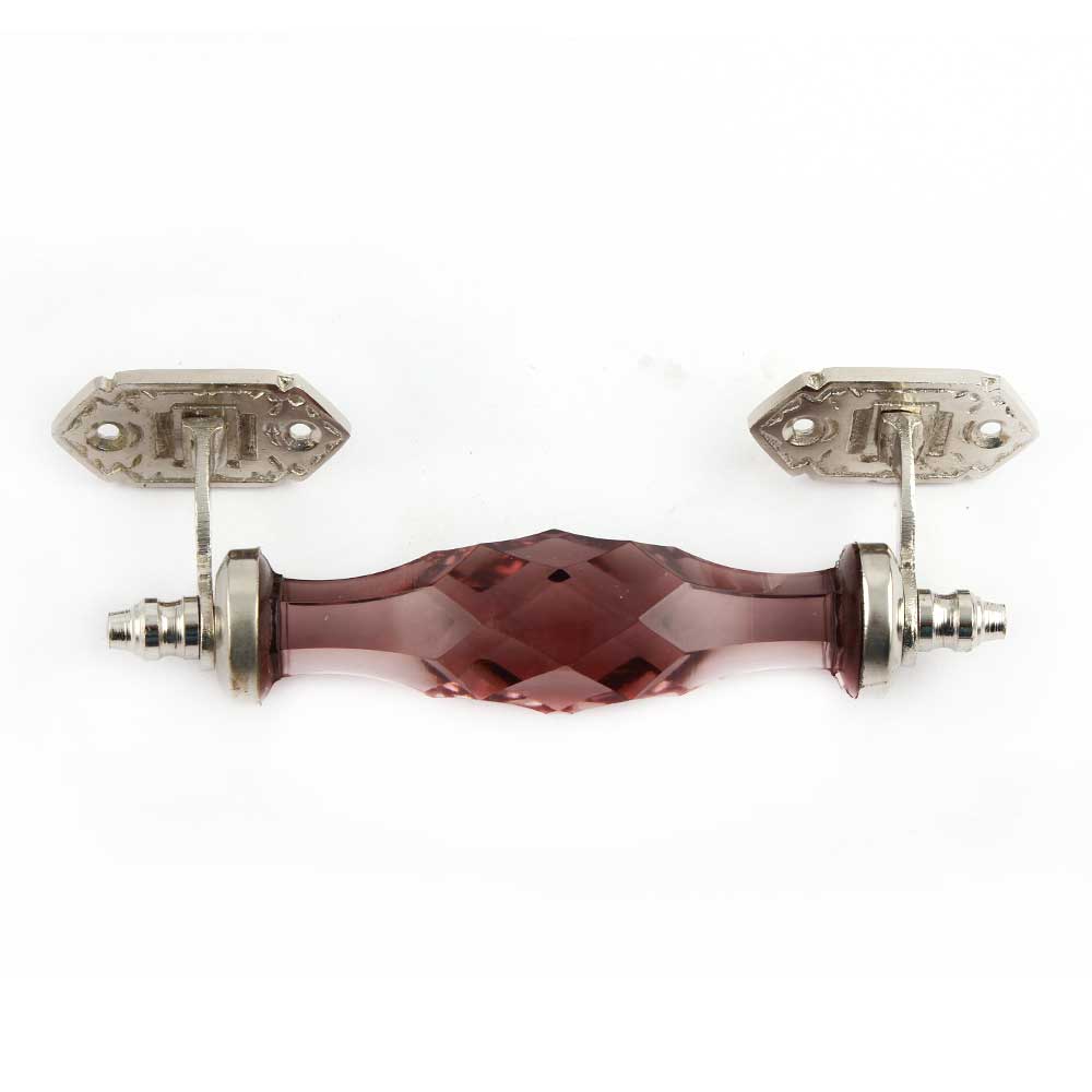 Purple Cut Glass Silver Big Door Handles. Ideal for Drawer, Dresser, Cabinet, Wardrobe, Cupboard and Almirah.