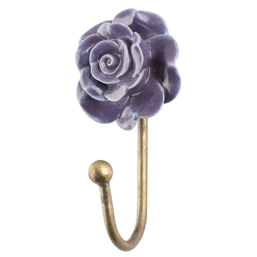 Purple Flower Ceramic Wall Hook. When Put on Wall or Cabinet It is An Art in Itself. This Hook is Strong Enough to Hold Your Keys, Tea Cups, Hand Towels, Cloths etc.