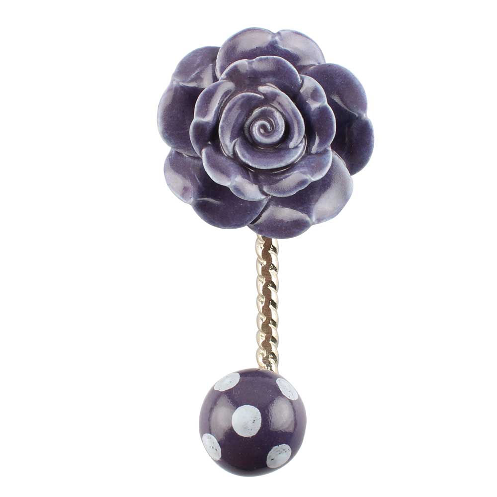 Purple Flower Ceramic Wall Hook in Silver Fitting. When Put on Wall or Cabinet It is An Art in Itself. This Hook is Strong Enough to Hold Your Keys, Tea Cups, Hand Towels, Cloths etc.