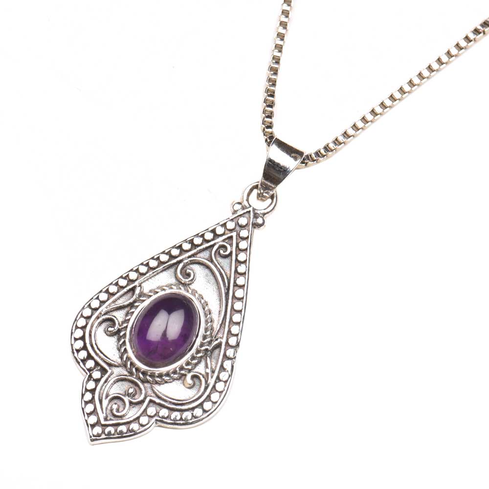 • Purple Stone Spiral Design 92.5 Sterling Silver Pendant Jewelry