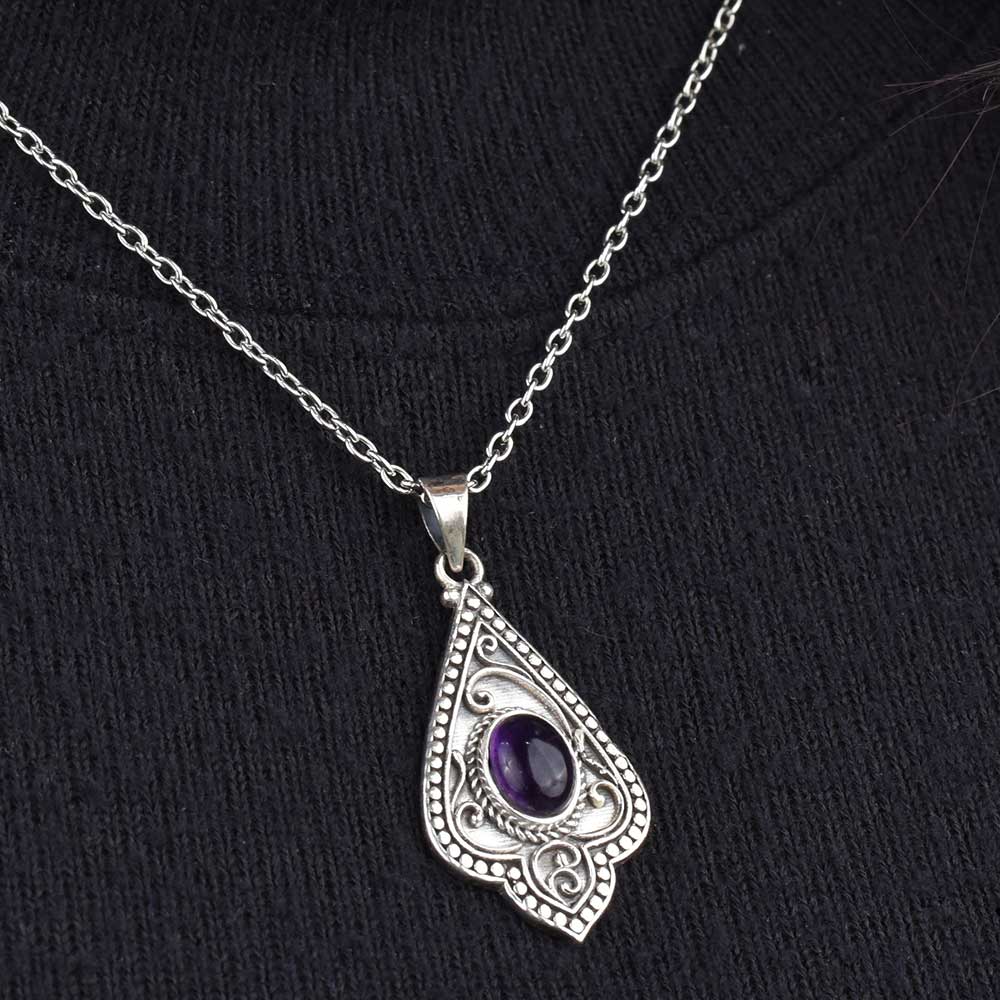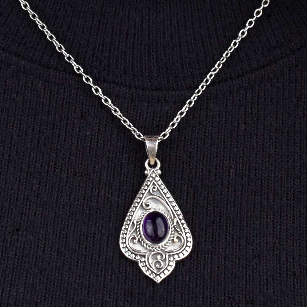 Purple Stone Spiral Design 92.5 Sterling Silver Pendant Jewelry