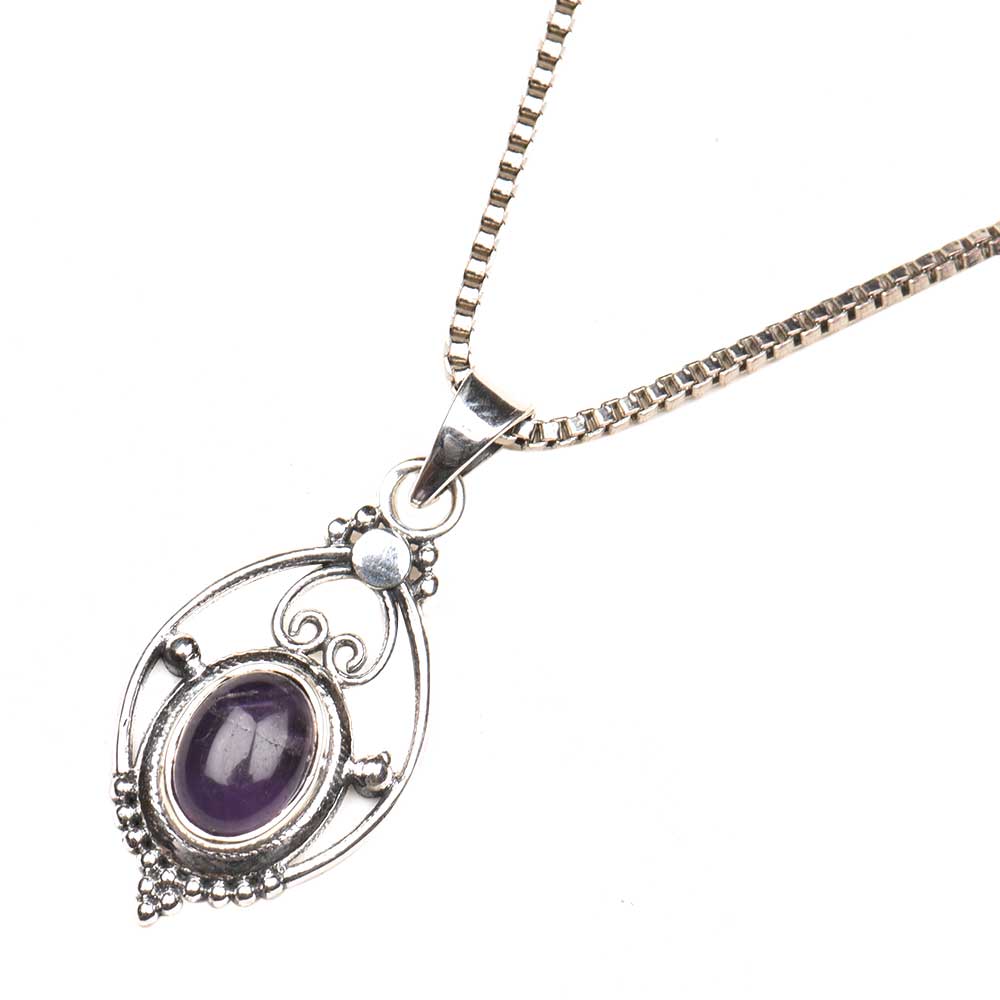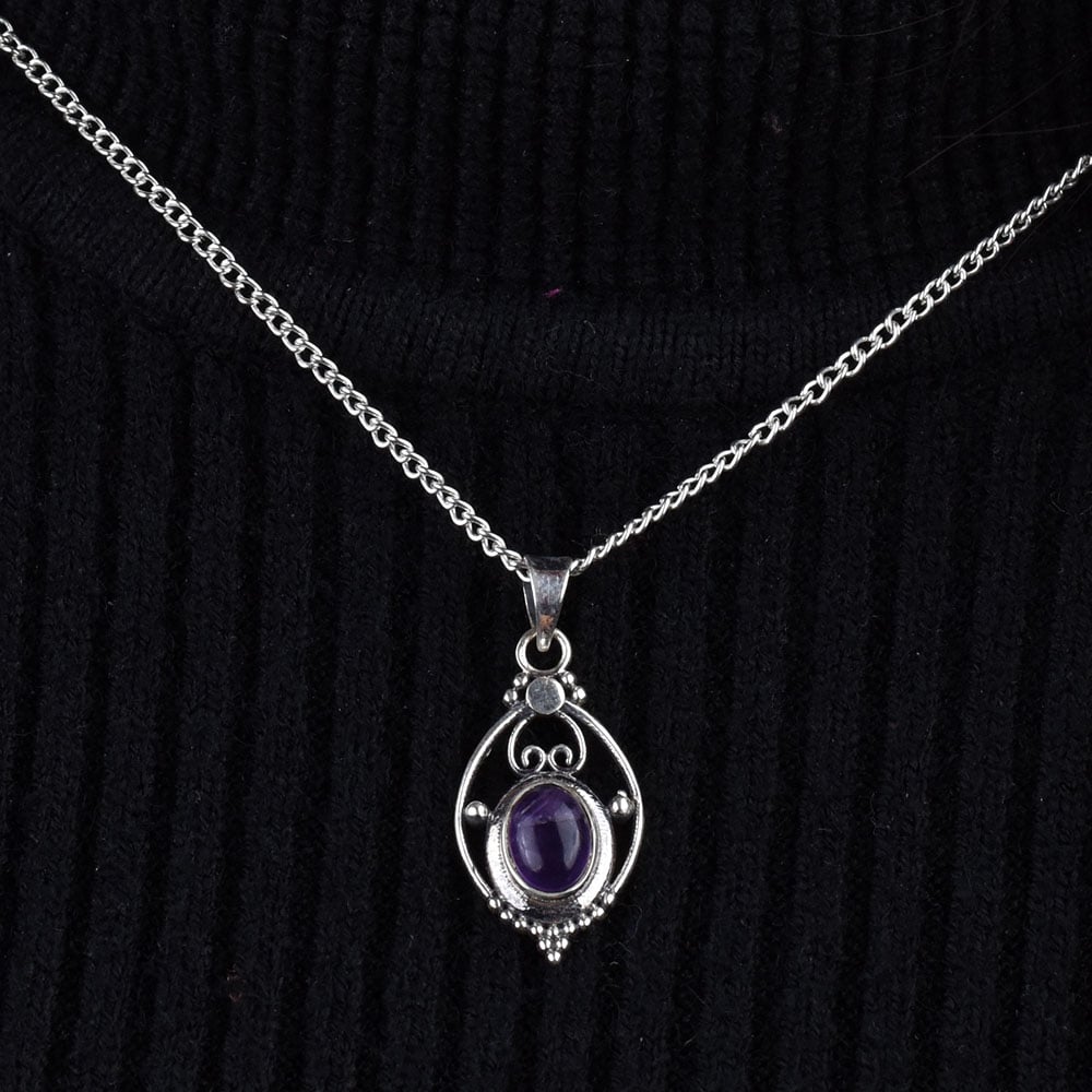 Purple Stone Wired Oval 92.5 Sterling silver Pendant Jewelry