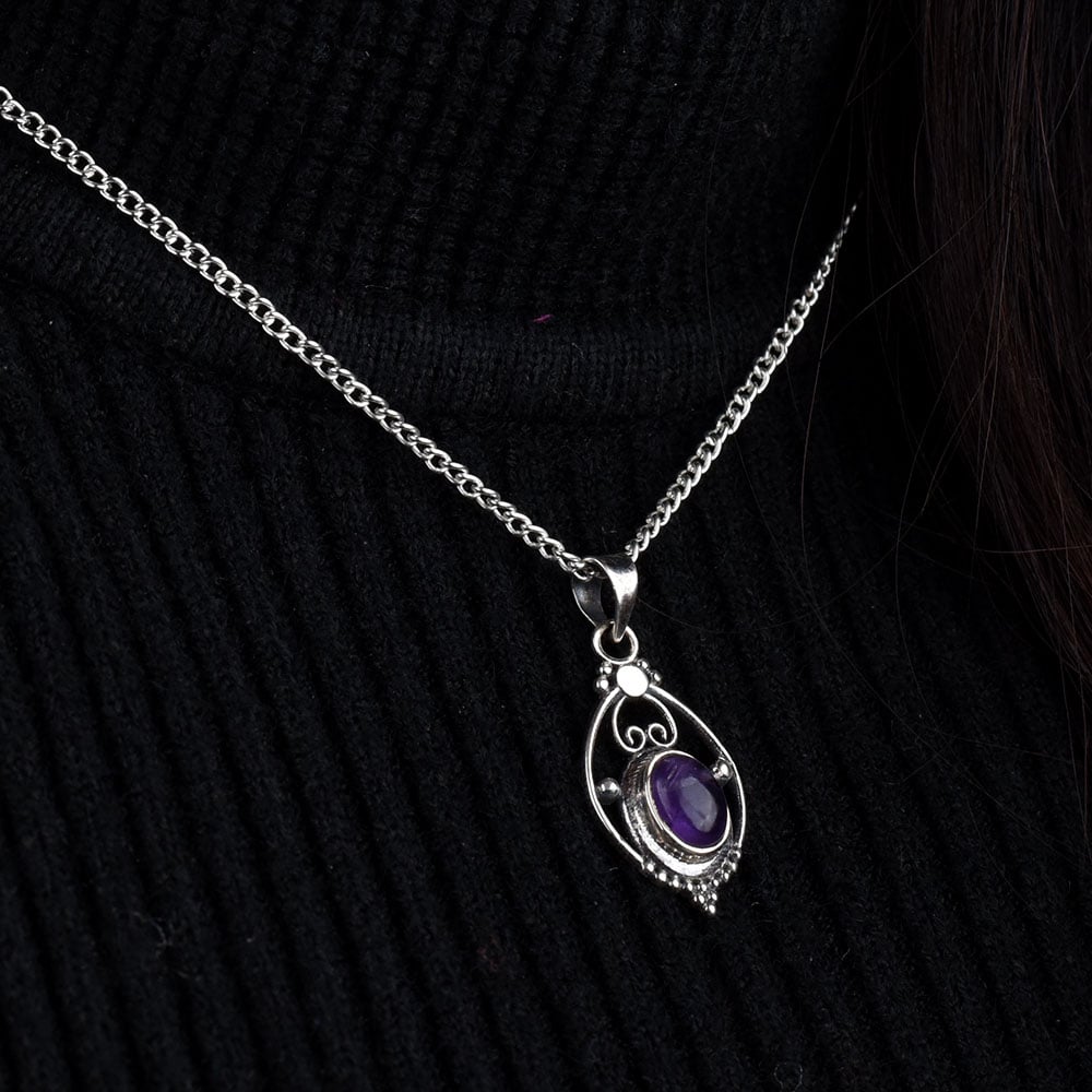 Purple Stone Wired Oval 92.5 Sterling silver Pendant Jewelry Make A praiseworthy Gift For Your Mother, Sister, Wife And Girlfriend. Ideal For Party, Office & Daily Wear Beautifully Designed Earrings Can Be Used On Birthday, Marriage, Engagement, Any Occasion.