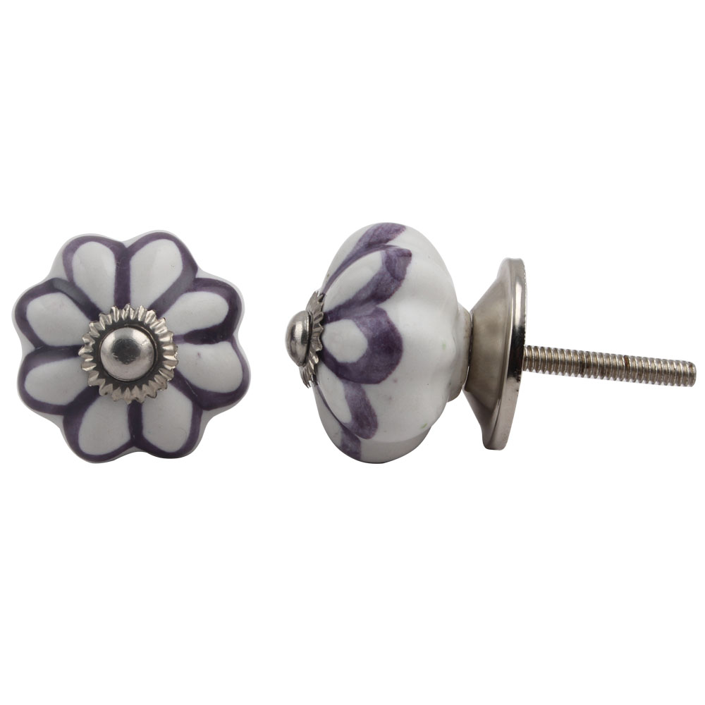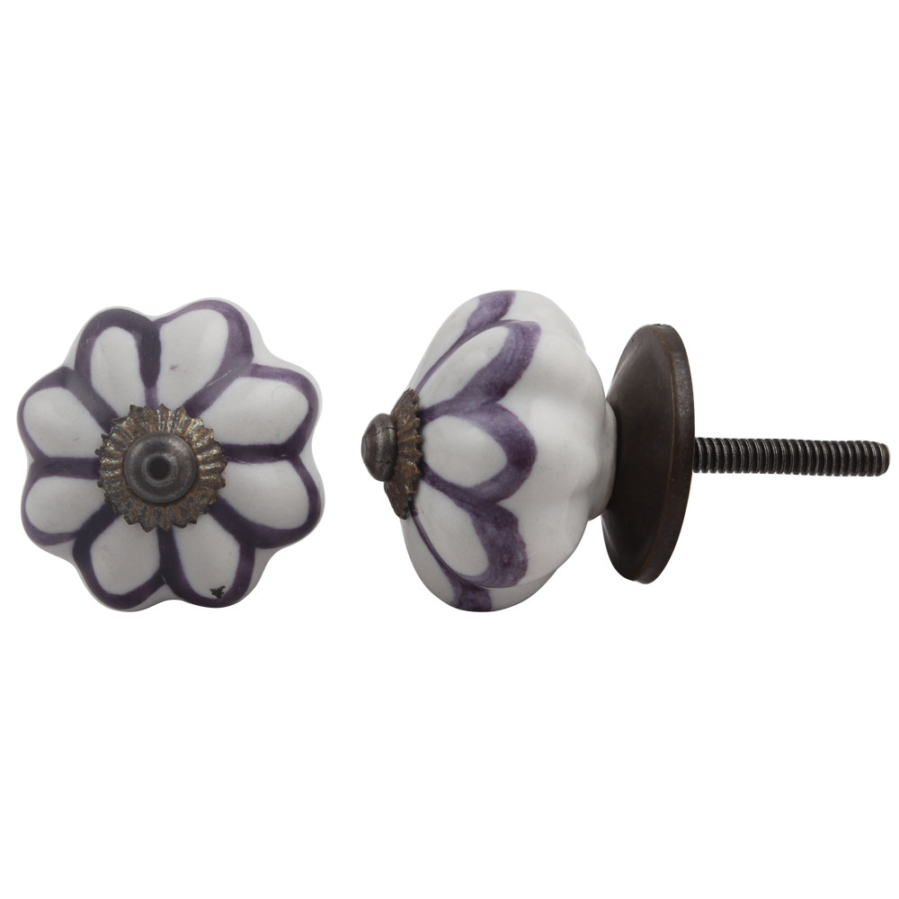 Purple Sunflower Medium Melon Ceramic knob. Ideal for kitchen cabinets, kitchen drawers, dining room, bed room, chest drawers, dressing tables, almirah