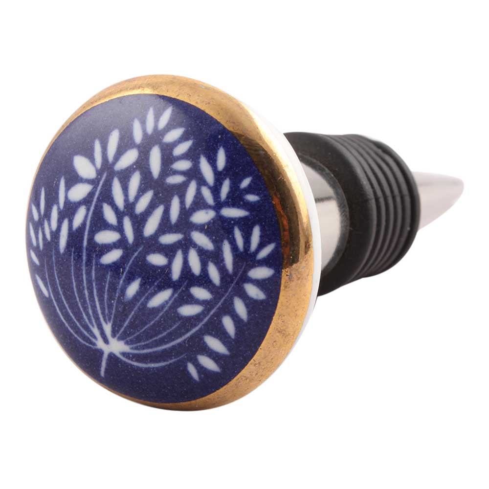 Indianshelf.com for bulk/wholesale orders.Indianshelf.us for personal purchases.The Purple Waxflower Flat Ceramic Wine Stopper beautifully combines practicality with elegance. Handcrafted with meticulous attention to detail, this wine stopper showcases a vibrant purple waxflower design, adding sophistication and charm to any bottle. Its robust ceramic construction guarantees a secure fit, making it a stunning and functional addition to your barware collection.