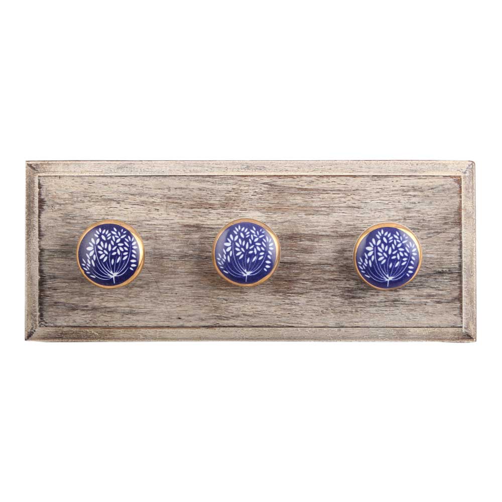 Purple Waxflower Flat Ceramic Wooden Hook. A Perfect Complement to the Soft Tone of the Wood are these White Traditional Hat & Coat Hook Made of Genuine Porcelain and Brass. It can be use to Hang Jewellery, Leashes, Towels, Scarves, Light Weight Sweaters, Caps Etc.