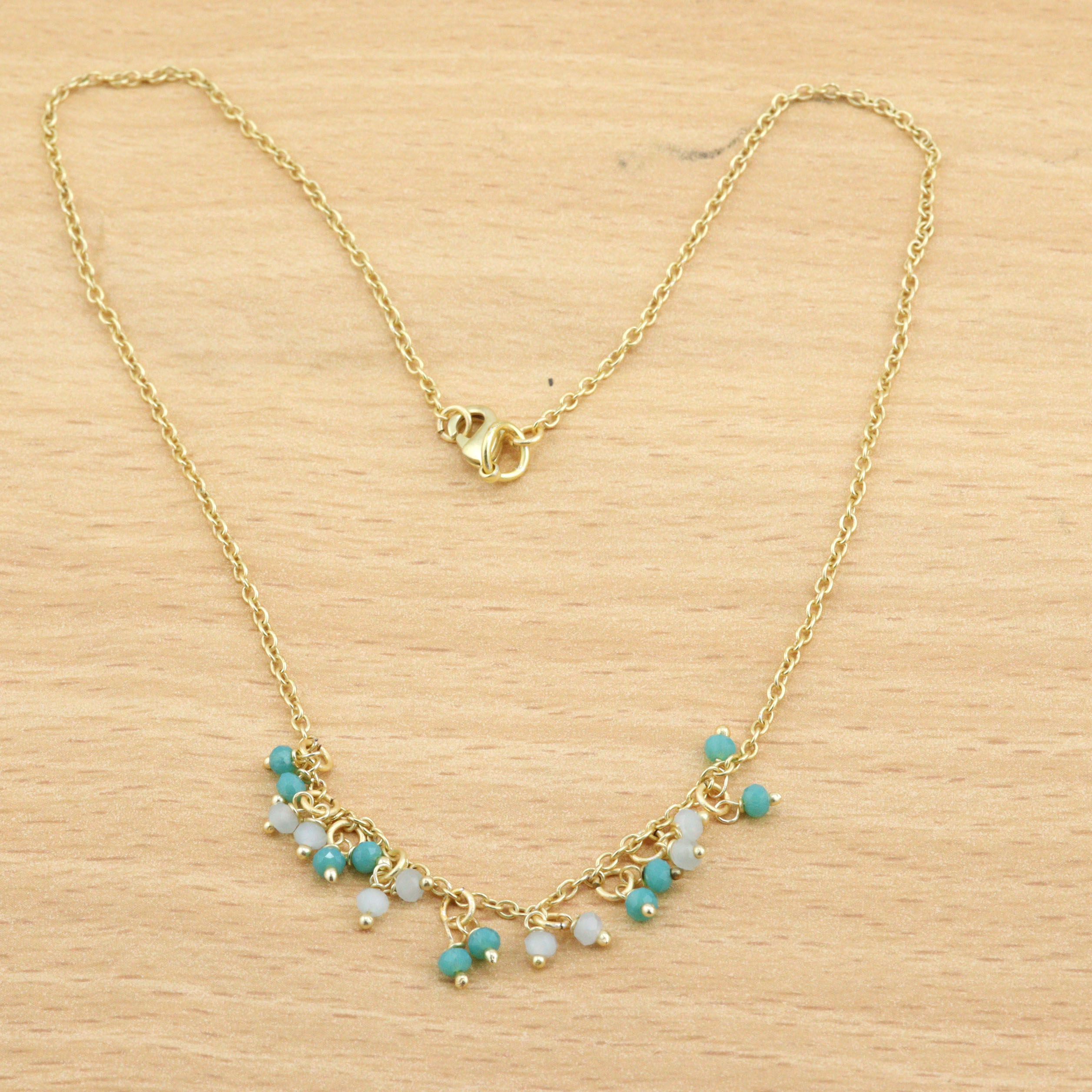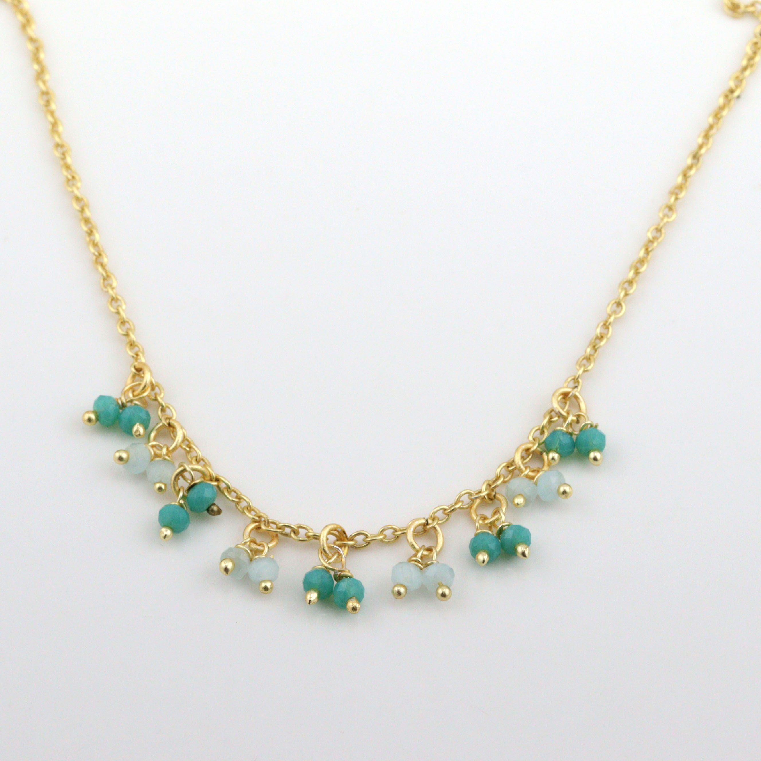 Keep the necklace dry and gently polish it to maintain the bright gold finish and the natural glow of the gemstones.
