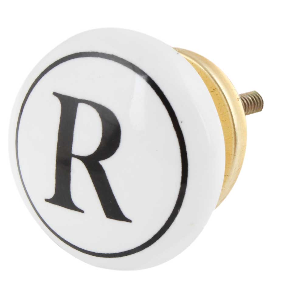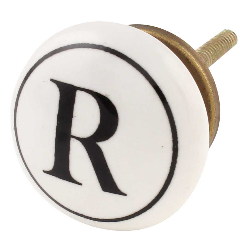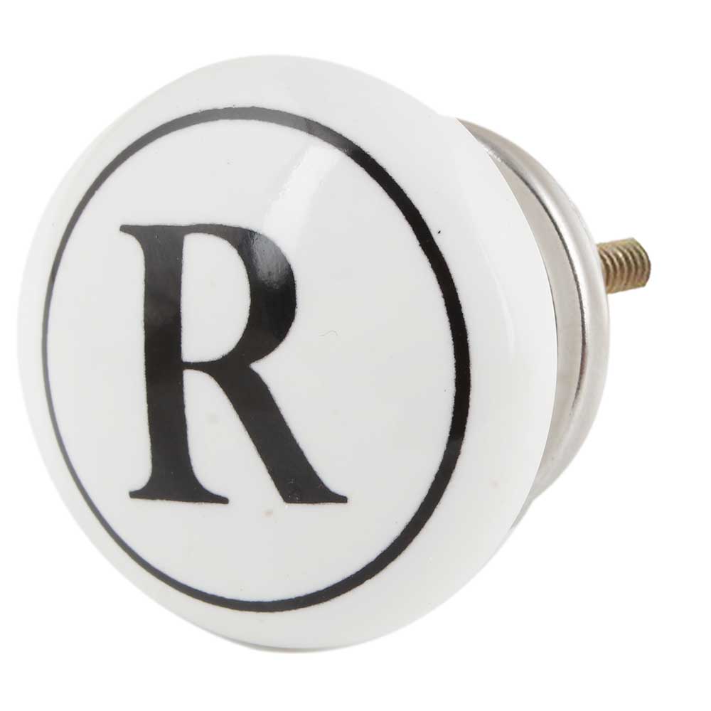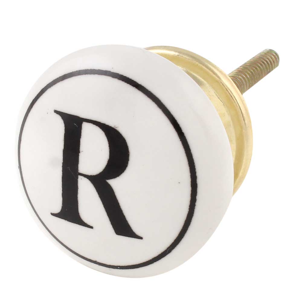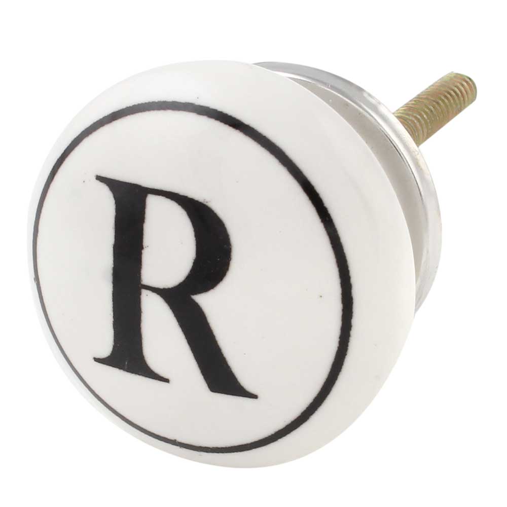The R Flat Alphabet Ceramic Drawer Knob showcases a contemporary and stylish design featuring the letter "R" prominently. Its bold yet simple look makes it a distinctive addition to your furniture, providing a personalized flair to cabinets, drawers, or doors.