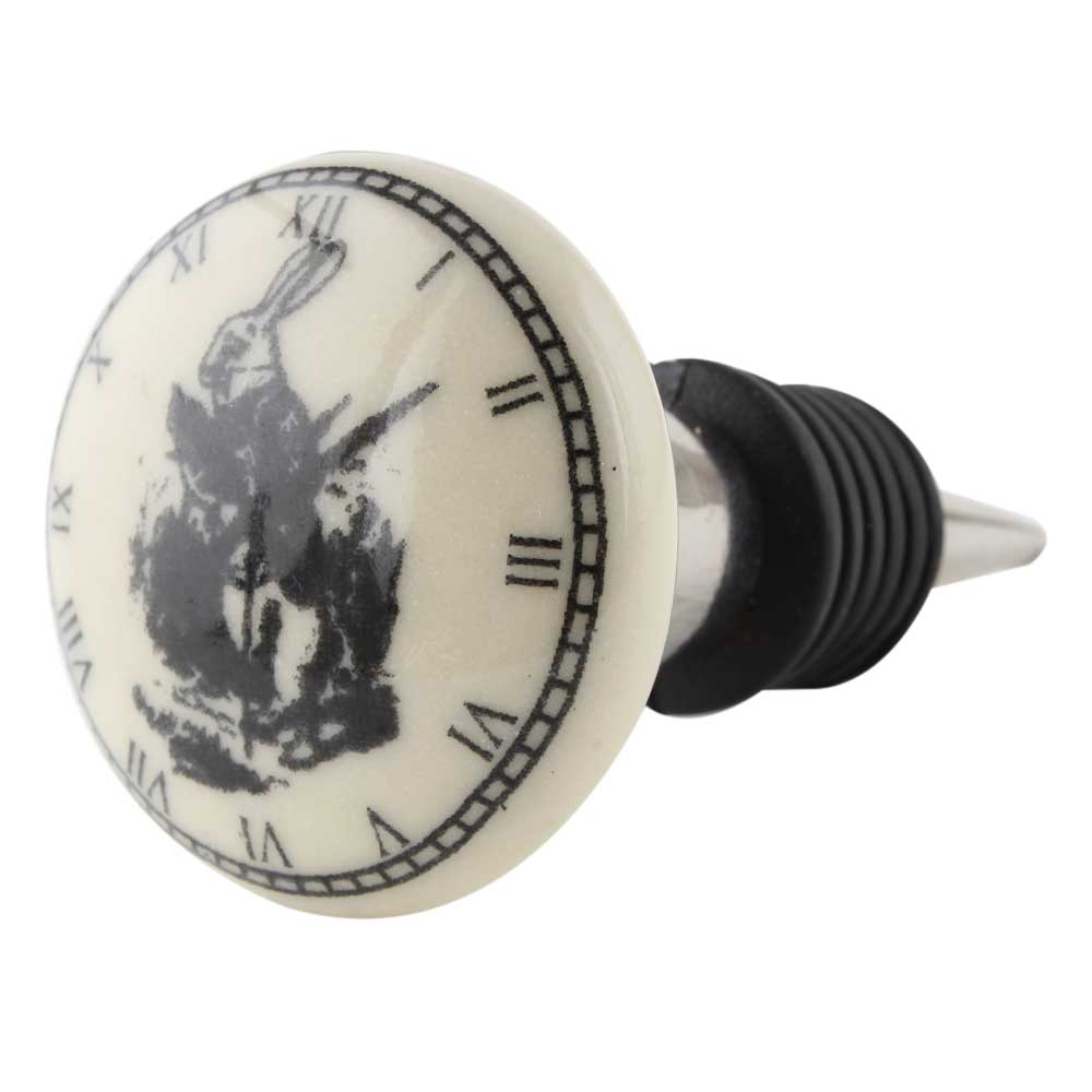 Rabbit Clock Ceramic Flat Wine Bottle Stopper