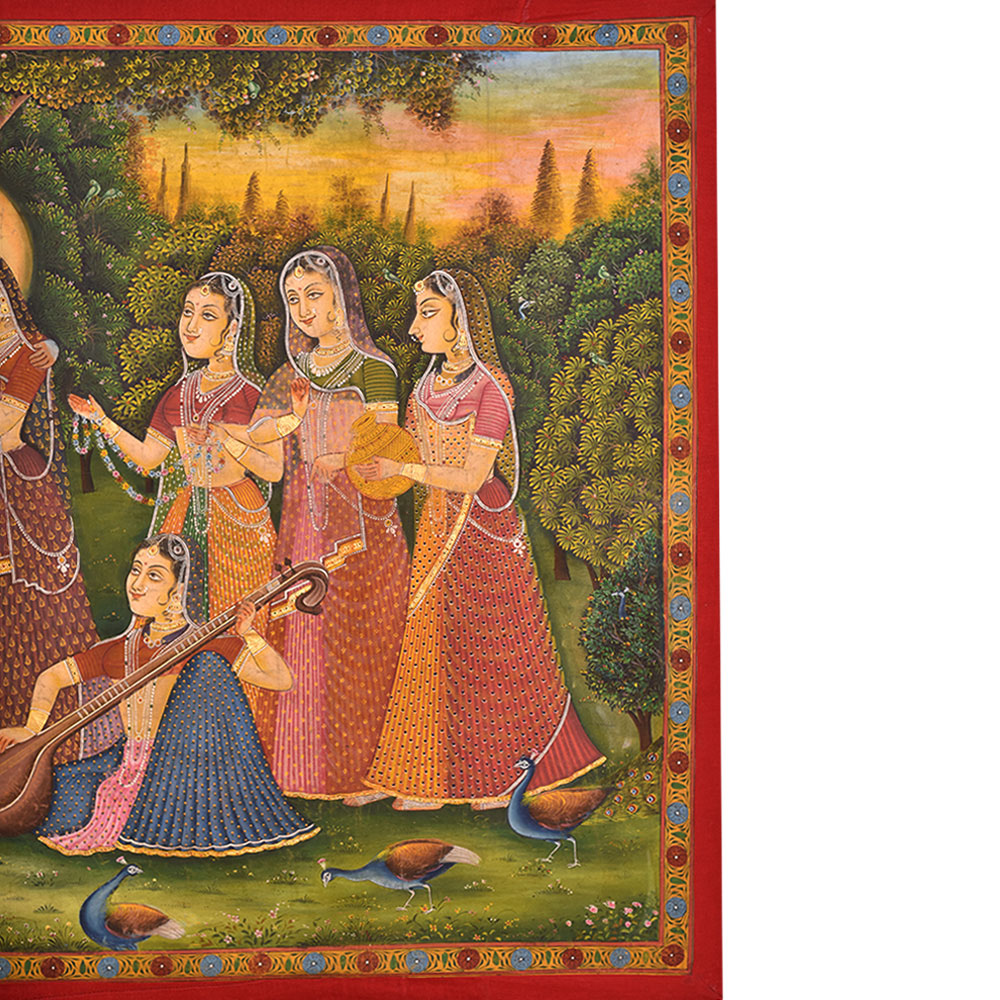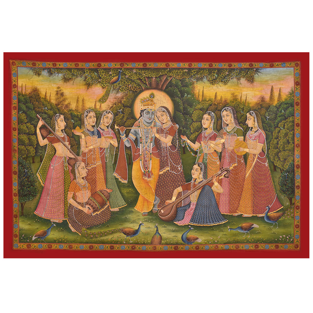 • Radha Krishna Pichwai Painting with peacocks and Gopis