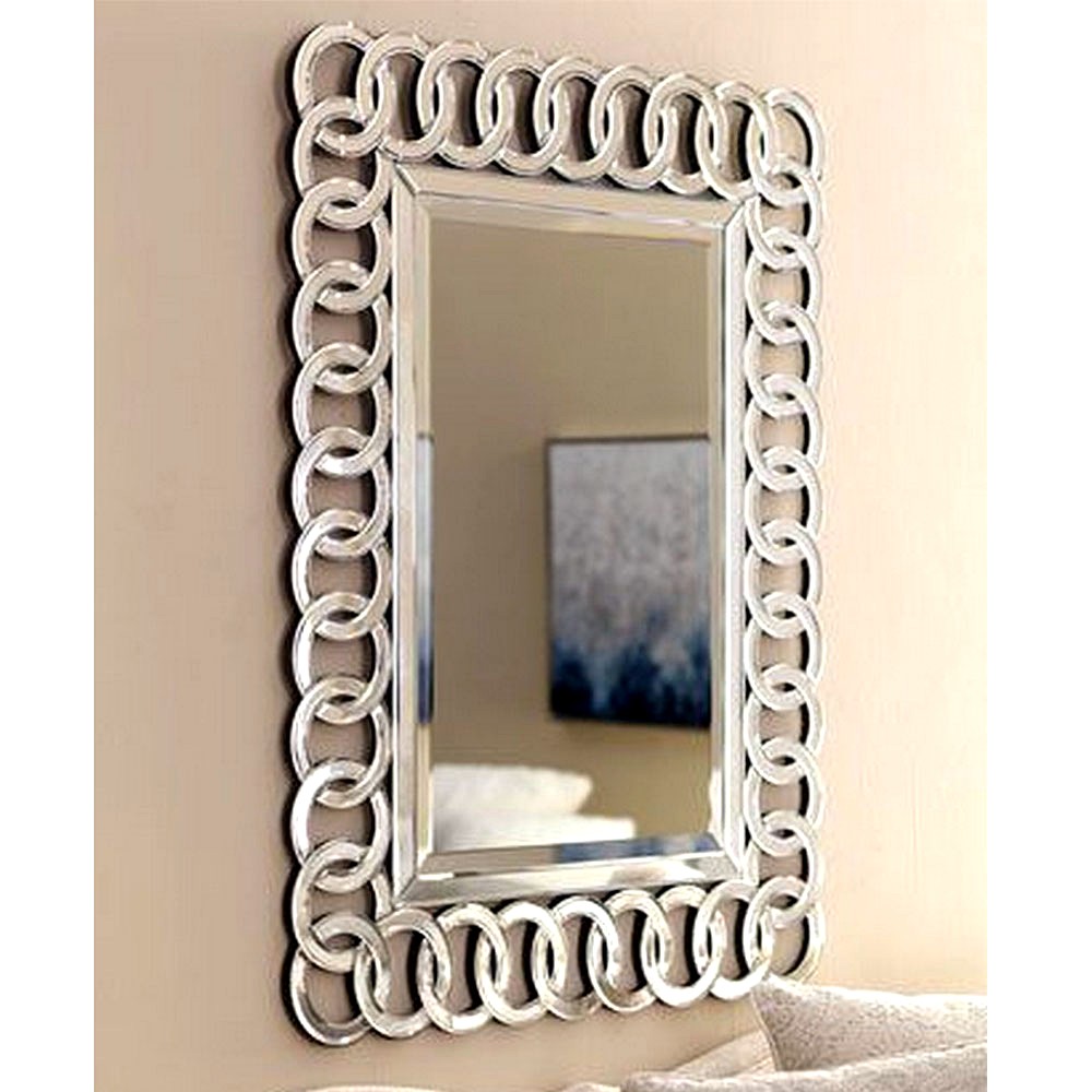 Redefine your interiors with this clear glass loop-frame mirror showcasing an intricate chain-link border that radiates luxury and depth. Its reflective brilliance and sculptural design make it a true statement piece for any wall. Packed & quality-checked by Indianshelf.