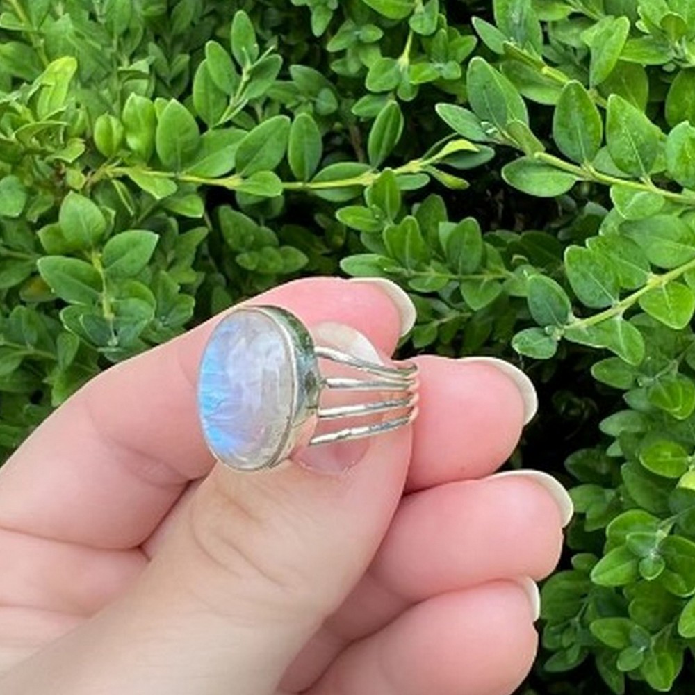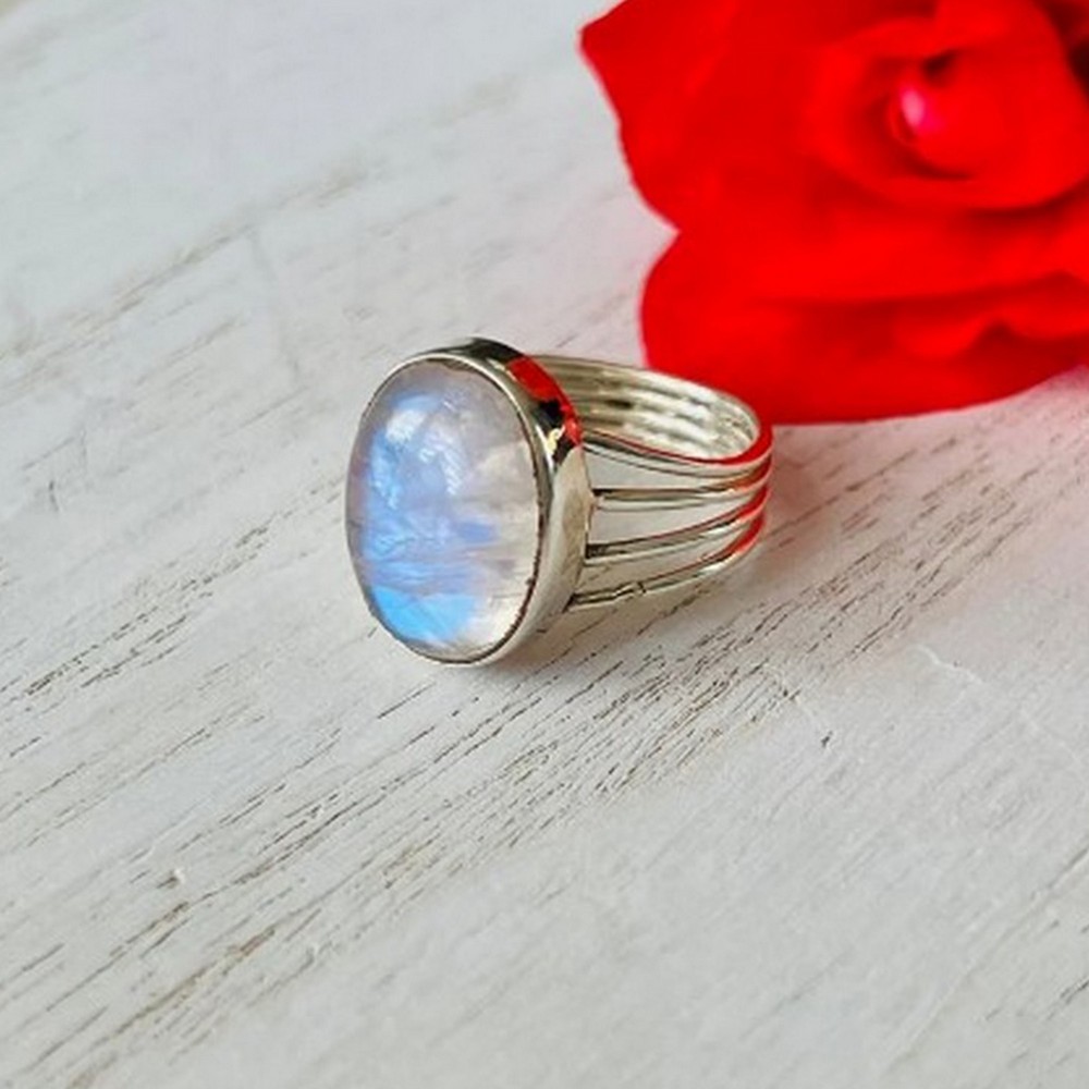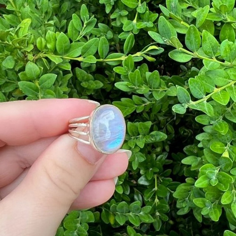 Treasure the allure of our rainbow moonstone 925 sterling silver ring handmade boho jewelry, where natural rainbow moonstone, 925 sterling silver and crescent moon come together to create a earthy elegance. This ring is for nature lovers, each piece reflecting individuality and care. Packed & quality-checked by Indianshelf.