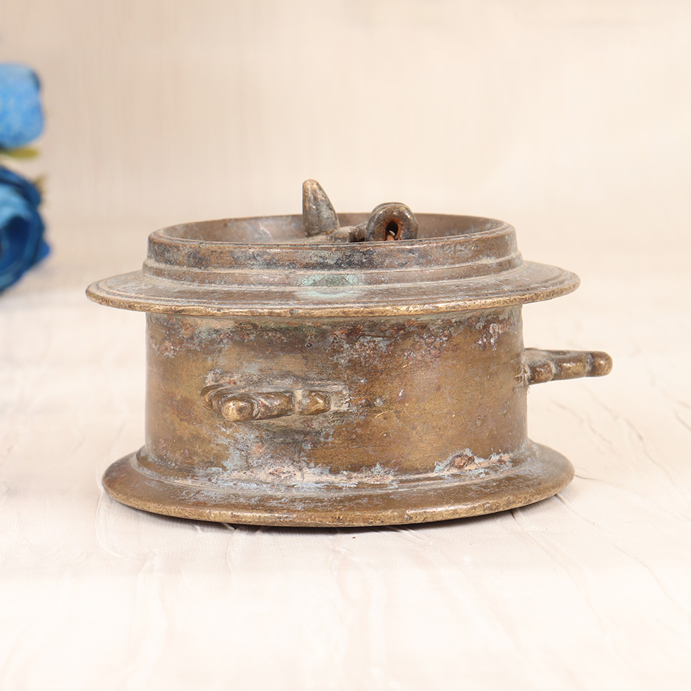 This vintage brass inkpot is a true work of art, blending old-world craftsmanship with modern functionality. Meticulously handmade by skilled artisans in the heart of Rajasthan, each piece is a unique testament to the region's centuries-old metalworking traditions. The solid brass construction and antique-inspired patina give this inkpot a rich, elegant look that will elevate the style of any desk or tabletop. But it's not just a pretty face - the spacious interior provides ample storage for your pens, pencils, paper clips, and other small office supplies, keeping your workspace neat and organized. The decorative lid adds an extra touch of old-world charm, making this inkpot a functional yet eye-catching accessory. Whether you're looking to add a vintage-inspired accent to your home office, or searching for a thoughtful gift for the writer, artist, or desk-bound professional in your life, this brass inkpot is sure to impress. Its durable construction and timeless design mean it will be a cherished part of your workspace for years to come.