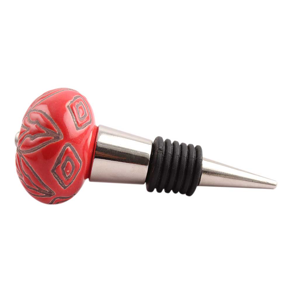 Red Amarylis Floral Etched Ceramic Wine Stopper.zinc alloy wine bottle stopper with attractive Jute Bag Packaging.