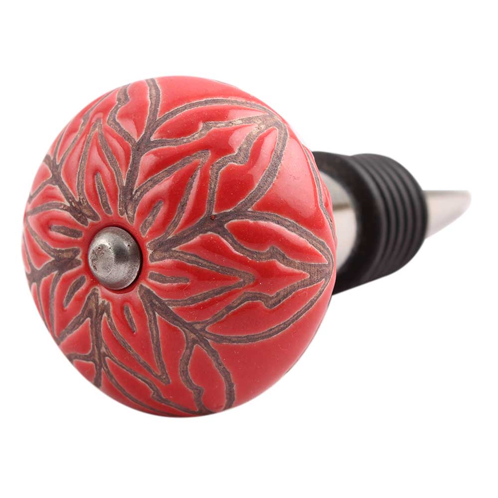 Red Amarylis Floral Etched Ceramic Wine Stopper