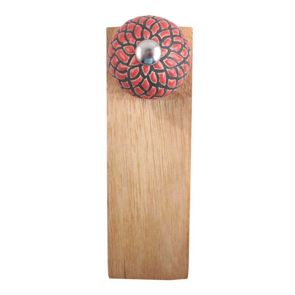Red And Black Etched Ceramic Wooden Door Stopper