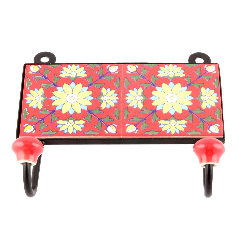 Red And Yellow Sunflower Ceramic Tiles Hooks. When Put on Wall or Cabinet it is an Art in itself. The Metal Part of this Hook is Black Powder Coated.