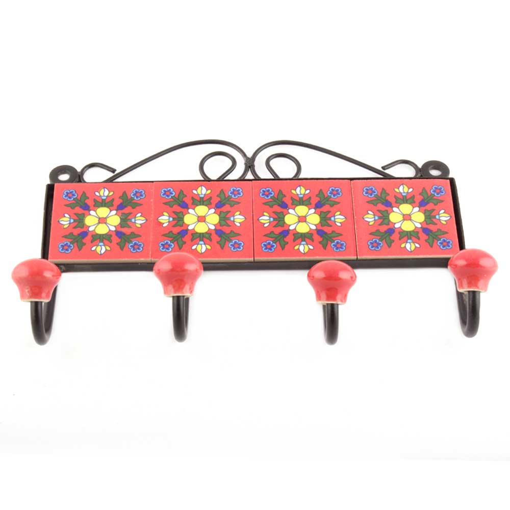 Red And Yellow Tiny Flower Ceramic Tiles Hooks